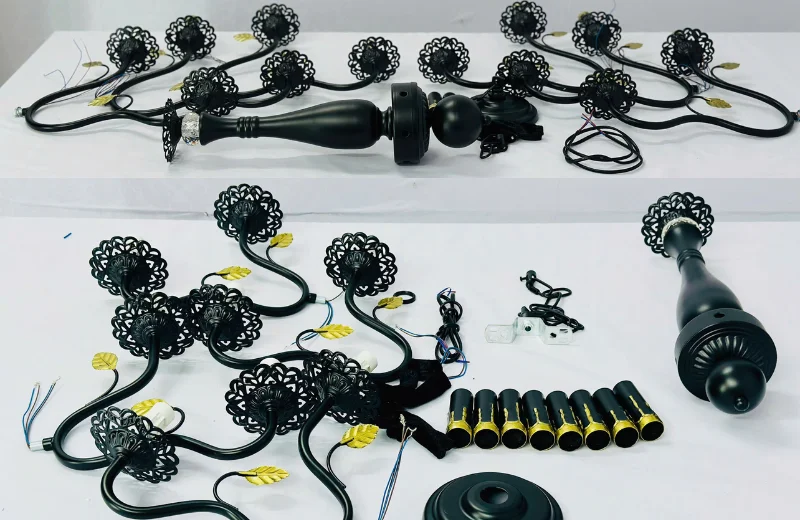 Đèn Chùm DC14 gây ấn tượng với thiết kế đối xứng, các tay đèn uốn cong nhẹ nhàng, tạo cảm giác hài hòa, thanh thoát. Chụp đèn hình nến giúp ánh sáng tỏa đều và dịu nhẹ, không gây chói mắt, tạo không gian ấm áp. Khung kim loại sơn tĩnh điện giúp đèn bền bỉ theo thời gian, chống gỉ sét và dễ dàng vệ sinh. Đèn phù hợp với không gian từ nhỏ đến trung bình, mang lại sự cân đối và tinh tế cho mọi căn phòng.