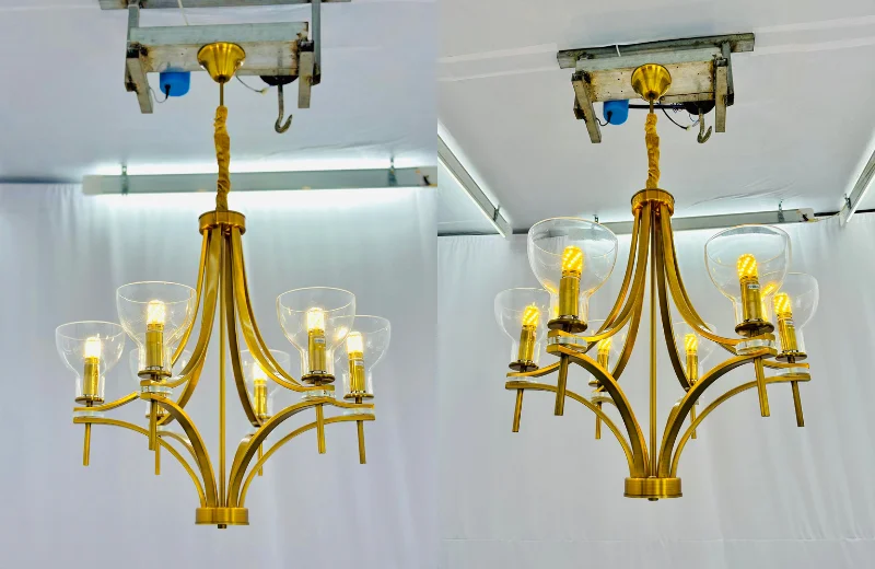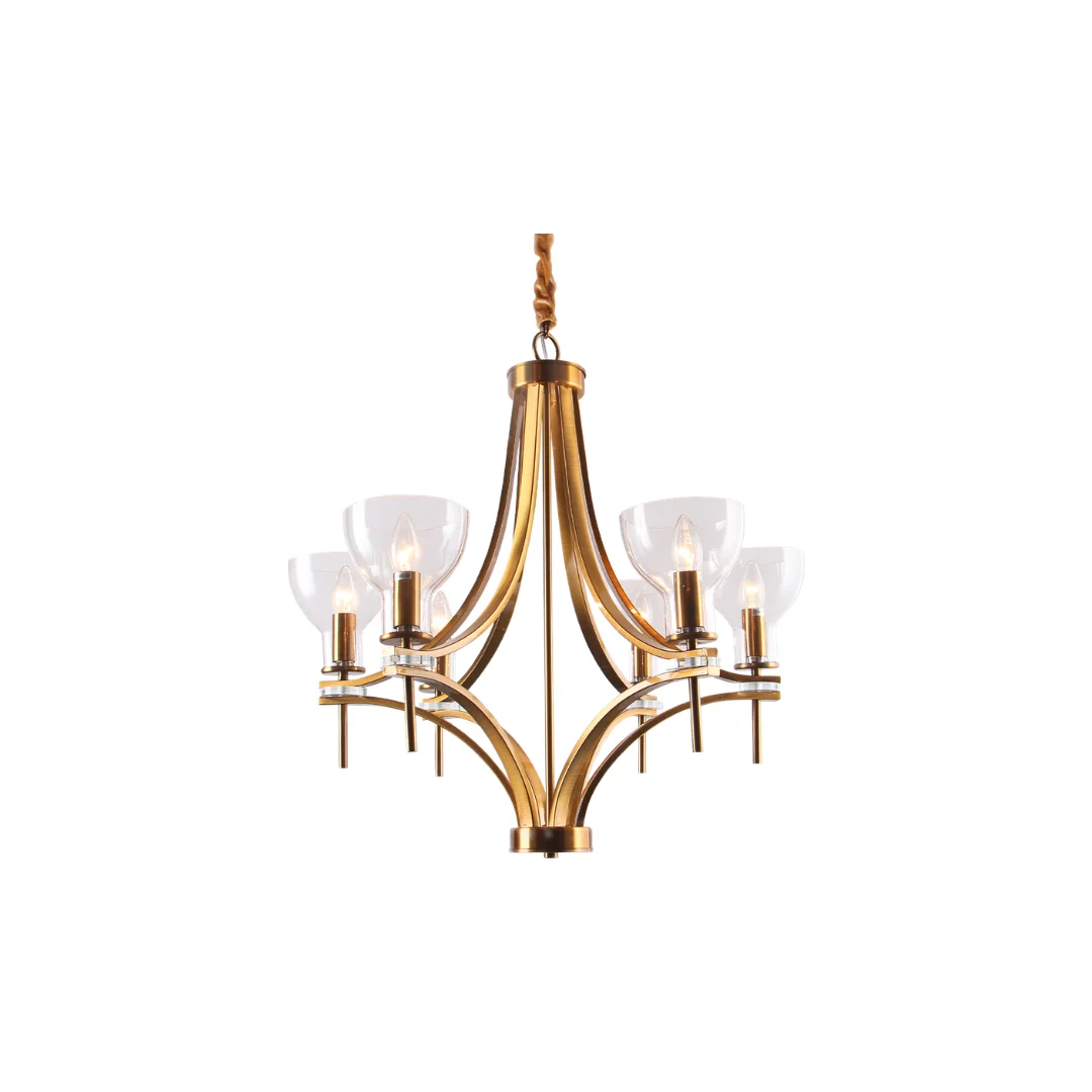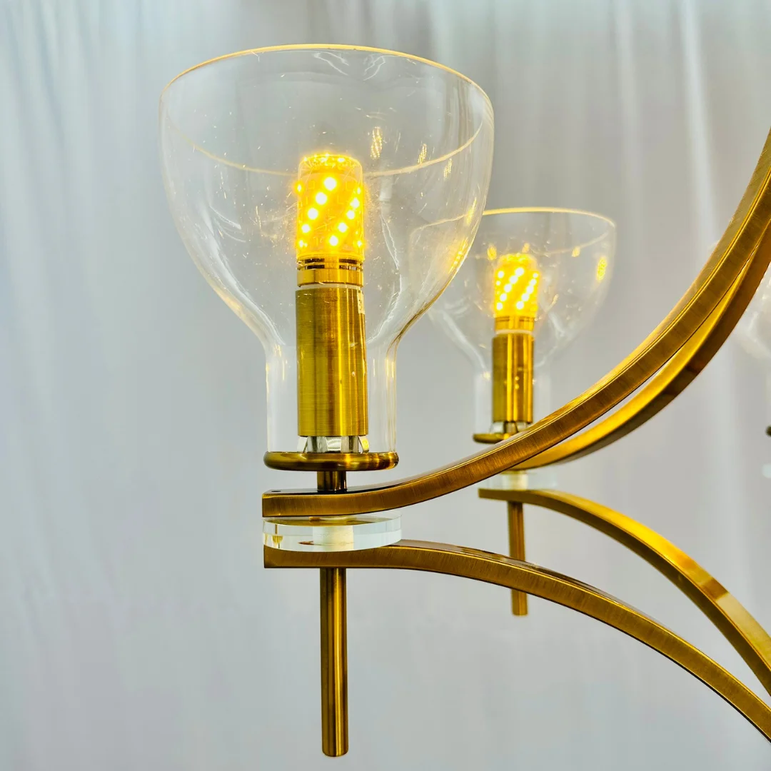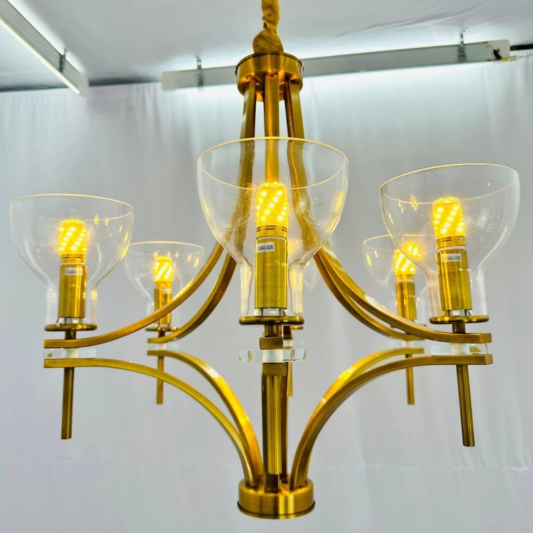 Khung tông đồng mang lại cảm giác sang, hợp với không gian tường sáng, nội thất gỗ hoặc phong cách modern-luxury. Với 6 bóng E14, mẫu đèn này cho độ sáng ổn trong phạm vi vừa, phù hợp bàn ăn 4–6 ghế, phòng khách vừa hoặc sảnh nhỏ.