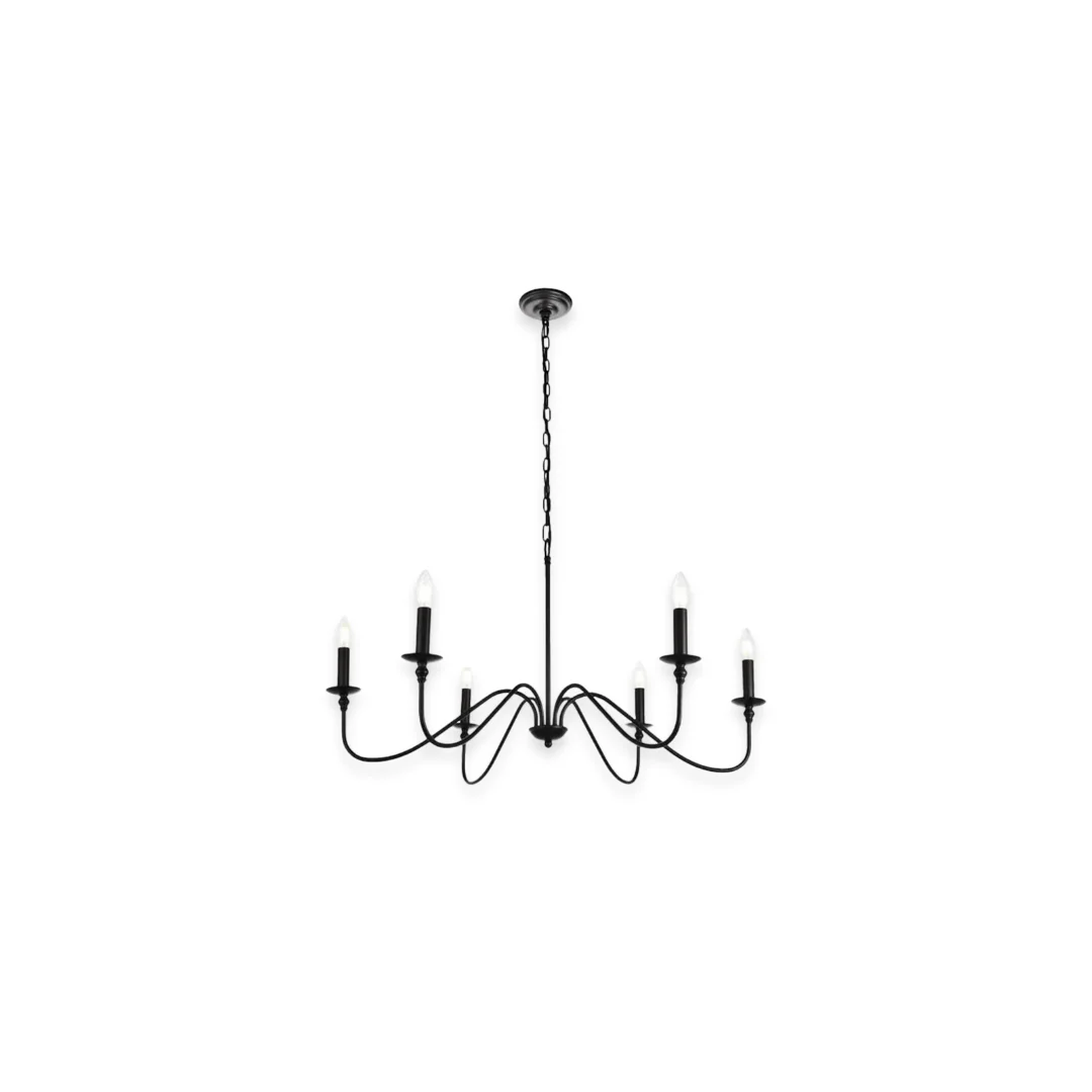 Đèn Chùm DC51 có cấu trúc 6 tay vươn đều, tạo hình uốn lượn nhẹ giúp tổng thể trông mềm và cân đối. Tông đen làm đường nét nổi bật, phù hợp với trần trắng, tường be hoặc các không gian nội thất gỗ. Khi kết hợp bóng E14 dáng nến, chiếc đèn cho cảm giác cổ điển nhẹ nhàng, tạo “mood” ấm áp cho căn phòng.