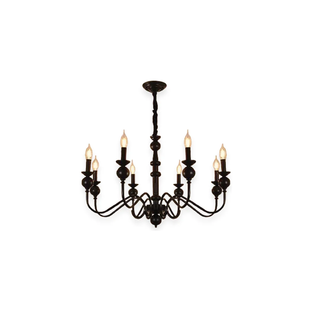 Đèn Chùm DC52 mang dáng đèn chùm tay nến với 8 tay tỏa đều theo vòng tròn, tạo bố cục hài hòa khi treo ở trung tâm trần. Các tay đèn uốn cong mềm, kết hợp phần thân đèn thẳng đứng giúp tổng thể thanh thoát, không bị nặng nề. Tông đen cho cảm giác sang và rõ nét, đặc biệt đẹp khi đặt trong không gian tường sáng hoặc nội thất trung tính.