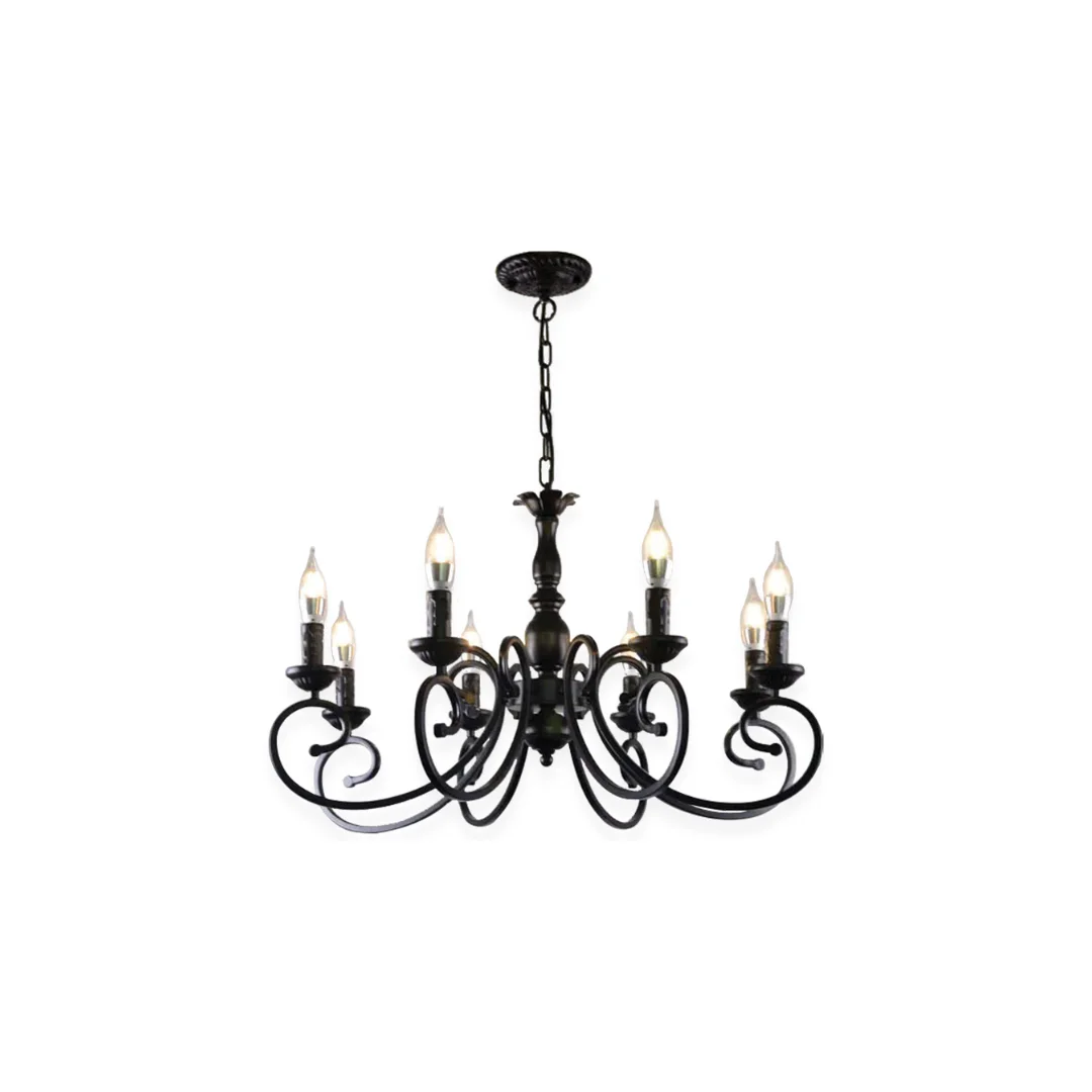 Đèn Chùm DC54 có thiết kế dạng tay nến với 6 tay tỏa đều, tạo bố cục cân đối và gọn mắt khi treo ở trung tâm trần. Các tay đèn được uốn cong nhẹ, phần đế bóng dạng nến giúp tổng thể có nét cổ điển vừa đủ, trong khi tông đen lại mang đến cảm giác hiện đại và nổi bật. Đây là kiểu dáng phù hợp cho những ai muốn trần nhà có điểm nhấn nhưng không thích đèn quá nhiều tầng hoặc nhiều chi tiết rũ.