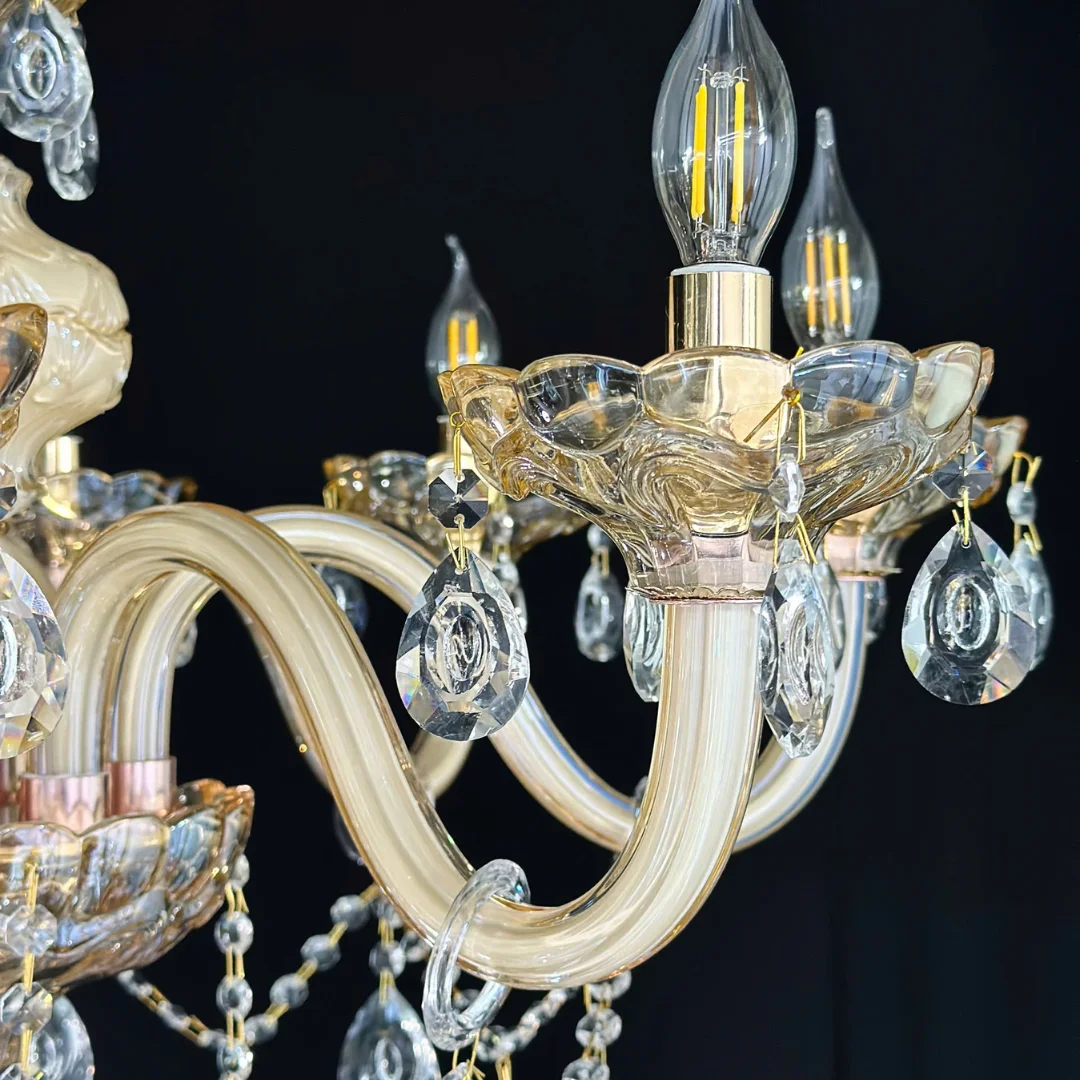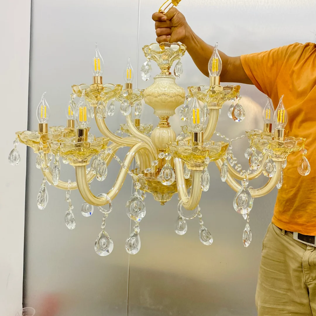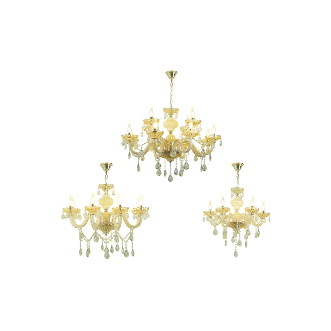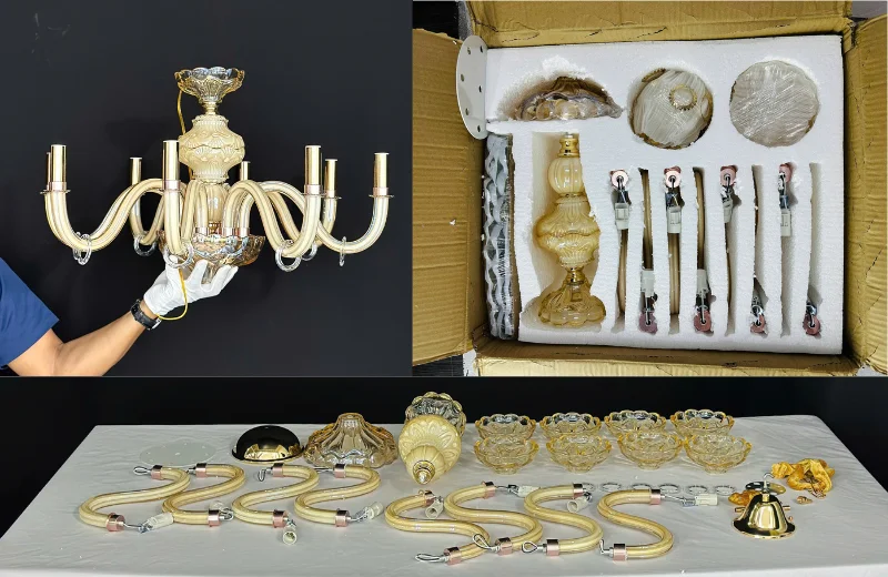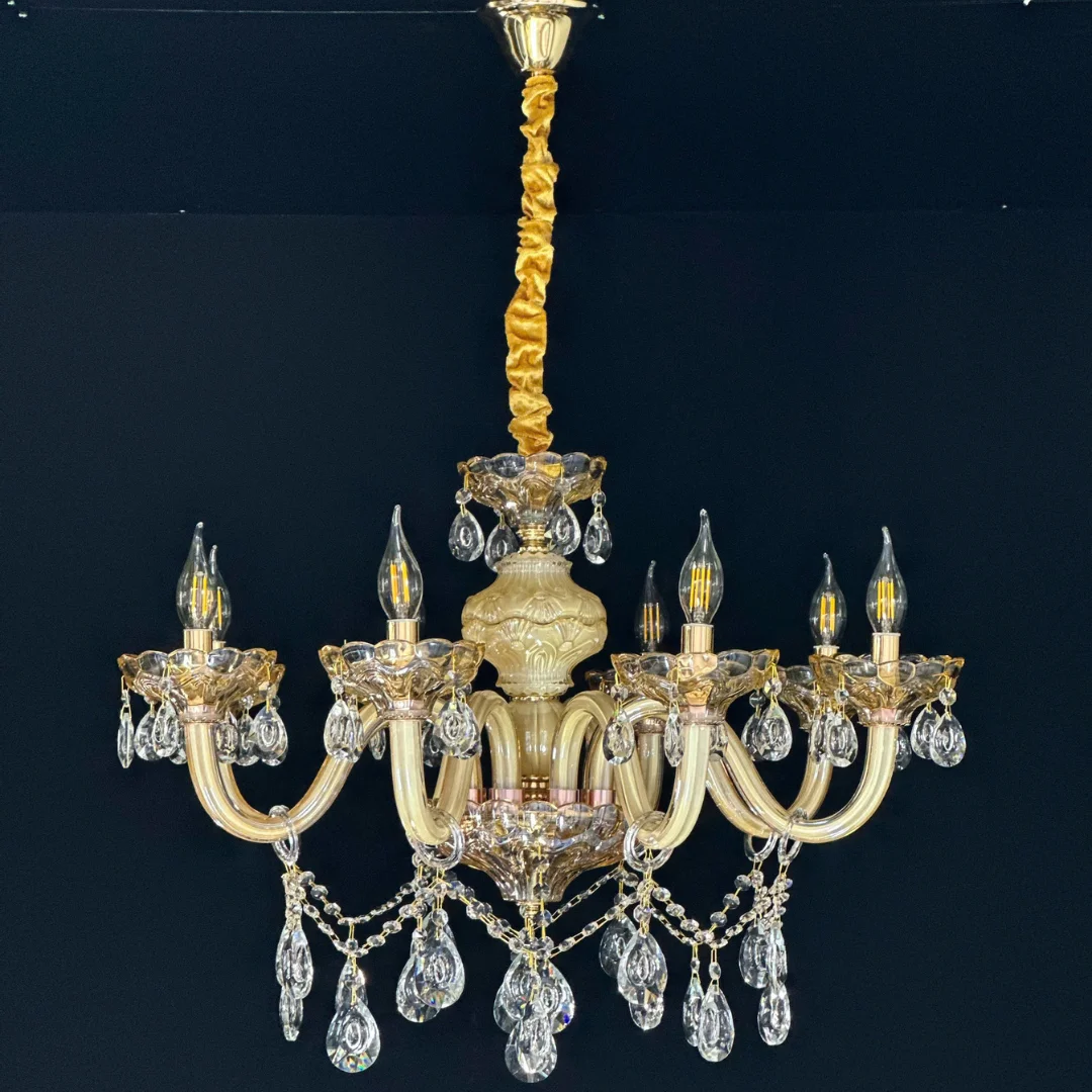 Đèn Chùm DC86096 có bố cục treo cân đối, form đèn thanh thoát nên không làm trần bị “nặng” dù treo ở vị trí trung tâm. Các tay đèn được sắp xếp đều, kết hợp chụp đèn tinh tế tạo nên tổng thể gọn gàng và dễ nhìn. Nhờ tỷ lệ hài hòa, mẫu 12 tay phù hợp phòng khách rộng hoặc khu vực tiếp khách; trong khi bản 8 tay và 6 tay gọn hơn, dễ ứng dụng cho phòng ăn hoặc phòng ngủ.