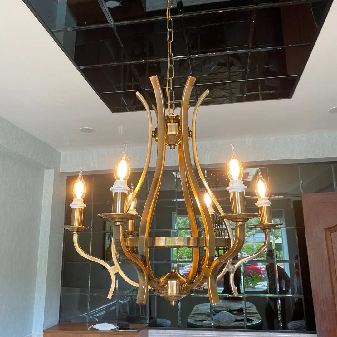 Khung đèn tông đồng tạo cảm giác cao cấp và dễ phối với nội thất gỗ, tường trung tính hoặc phong cách modern-luxury. Sử dụng bóng E14 giúp ánh sáng lên đẹp, tiện thay thế và phù hợp nhu cầu chiếu sáng sinh hoạt hằng ngày.