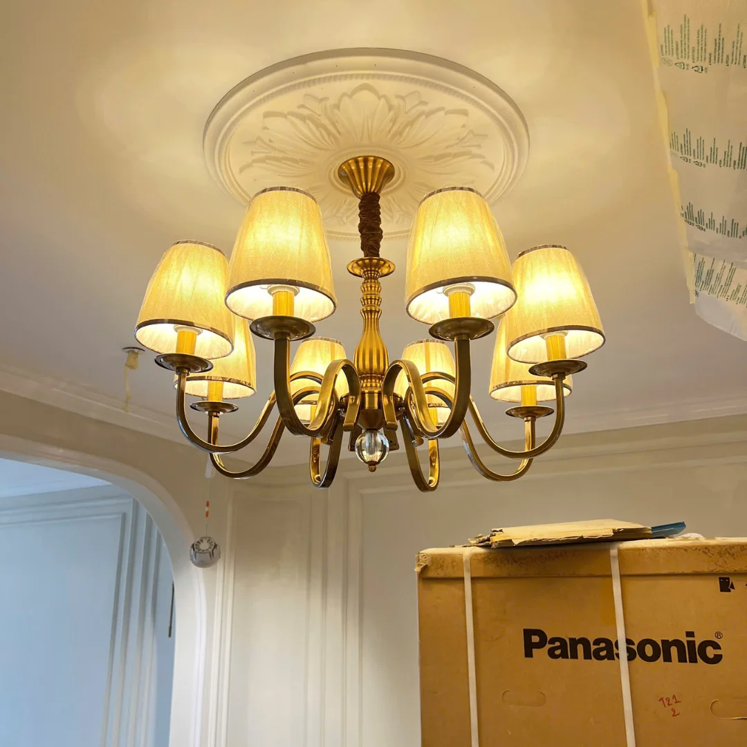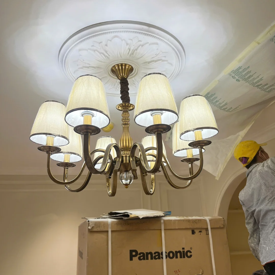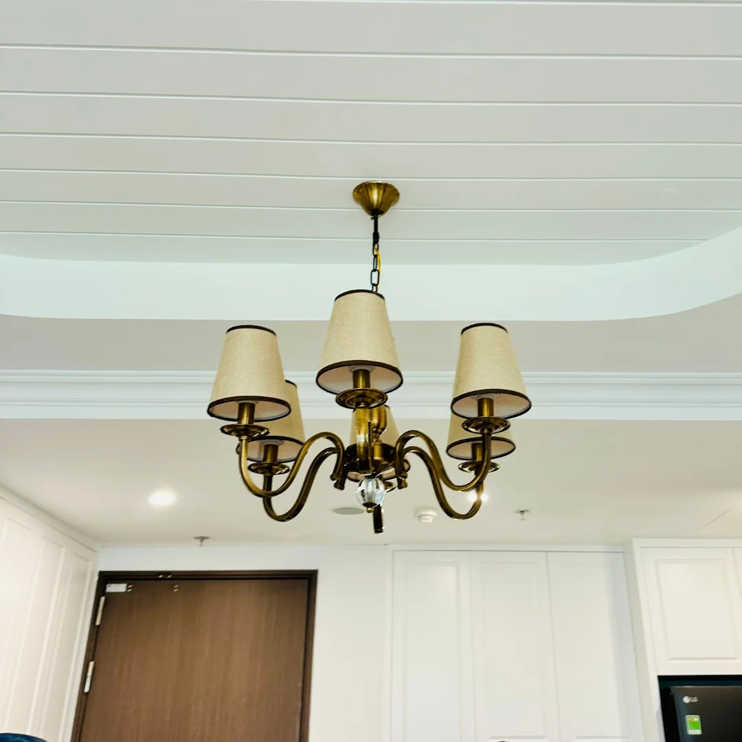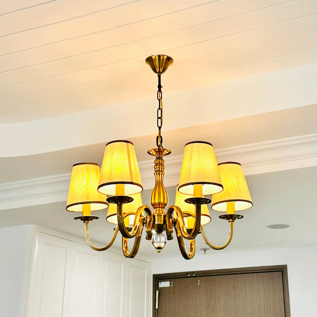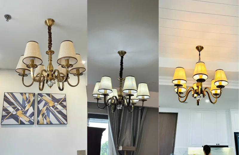 Đèn Chùm DC9088 có form chùm nến cân đối, các tay đèn uốn cong mềm tạo cảm giác thanh lịch, gọn gàng và không rối mắt. Thiết kế hướng đến sự tinh giản nên rất phù hợp với không gian nhà phố, căn hộ hoặc khu vực bàn ăn cần ánh sáng vừa đủ. Chụp đèn giả nến giúp ánh sáng nhìn tự nhiên hơn, tạo cảm giác ấm và dễ chịu khi sinh hoạt.