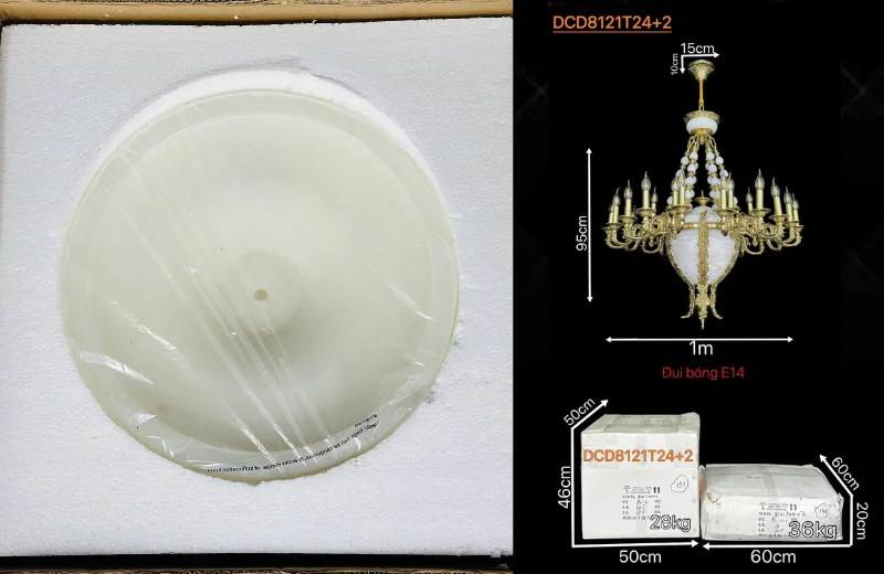 | DCD8121T24+2 | D1050 x H950 | E14 x 26 | Thân đồng nguyên chất 100% + thân đá ngọc |