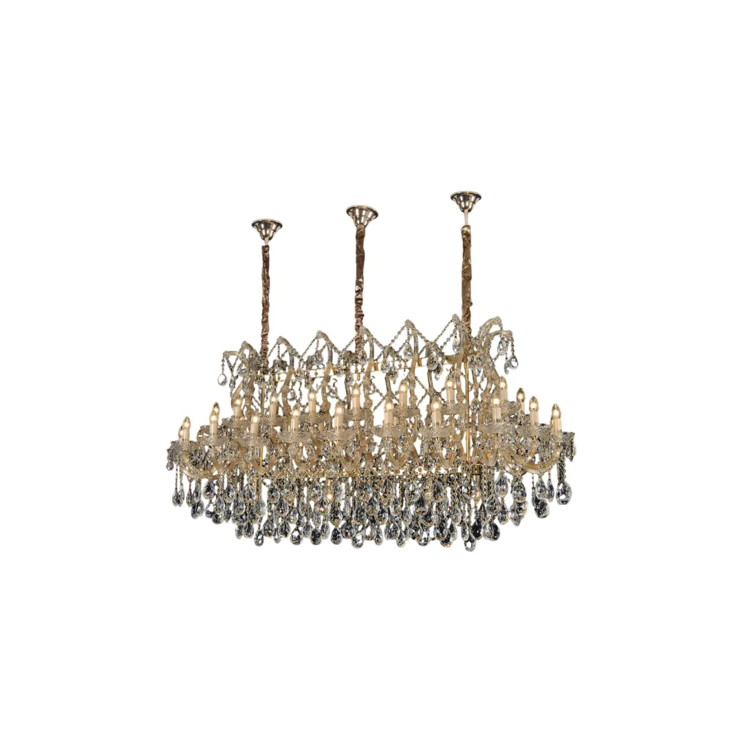 Đèn Chùm Pha Lê DC5263N44 sở hữu dáng đèn ngang nhiều tầng, tạo cảm giác “đầy” và sang khi treo ở trung tâm không gian. Hệ tay đèn được bố trí dày, kết hợp lớp pha lê thả xuống theo chiều dài giúp tổng thể bề thế và cân đối với những khu vực mặt bằng rộng. Khi bật sáng, ánh đèn đi qua các hạt và giọt pha lê tạo phản chiếu đa điểm, làm không gian trông lung linh và có chiều sâu hơn.