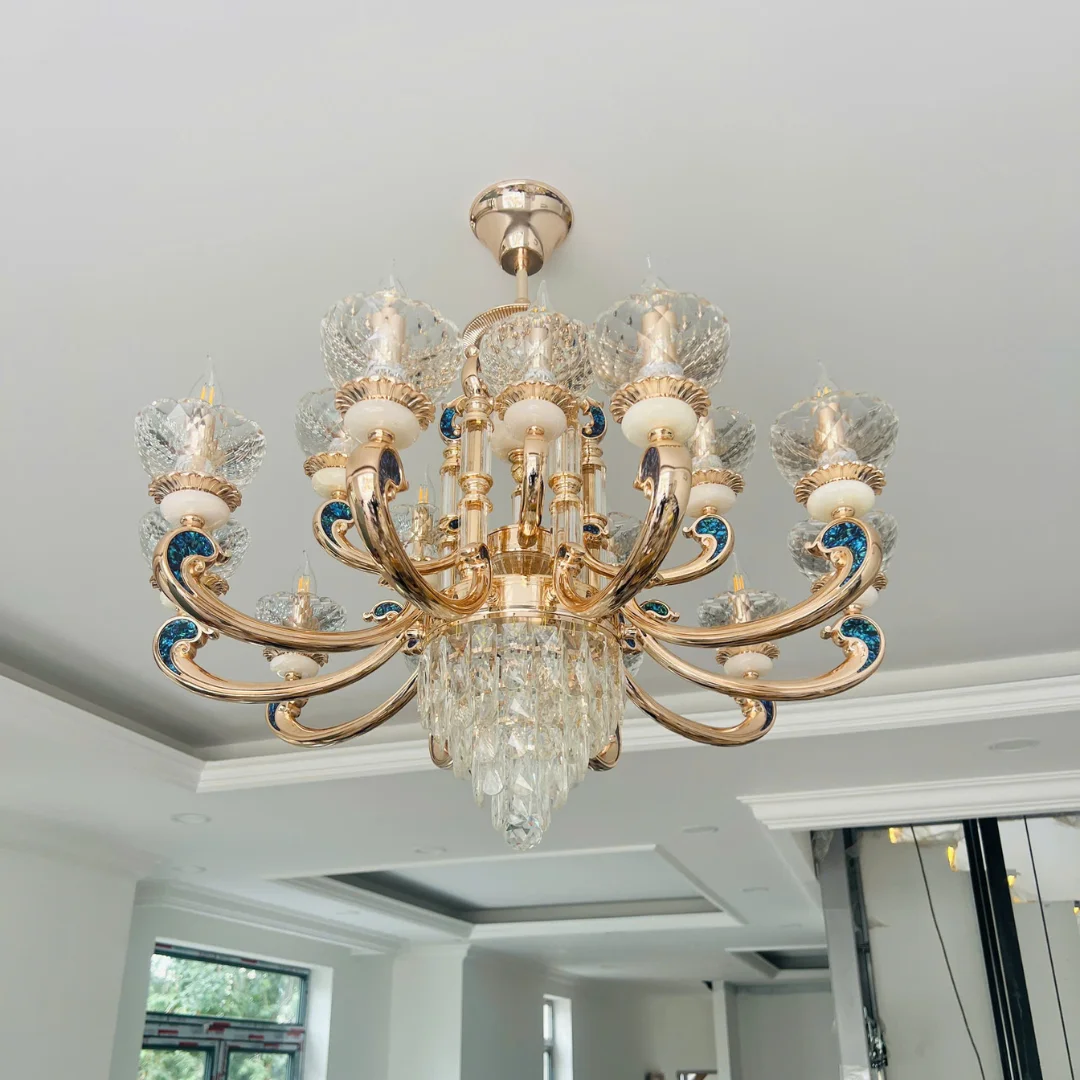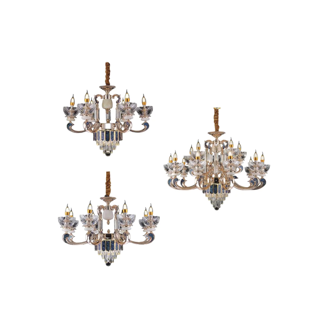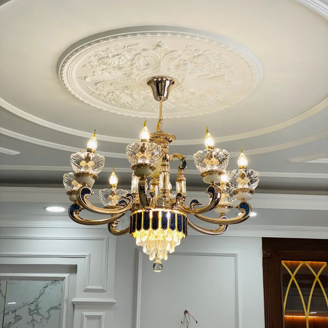 Đèn Chùm Pha Lê DC6018 sở hữu dáng đèn chùm sang trọng với các tay đèn cong mềm, mỗi tay đèn bố trí bóng nến E14 giúp ánh sáng lên đẹp và tạo cảm giác ấm áp. Phần chén đèn tạo hình tinh tế, kết hợp tông ánh kim ấm giúp tổng thể đèn nhìn cao cấp và dễ phối nội thất. Bên dưới là cụm pha lê thả dày, tạo điểm nhấn mạnh ở trung tâm và giúp đèn trông “đắt” hơn ngay cả khi chưa bật sáng.