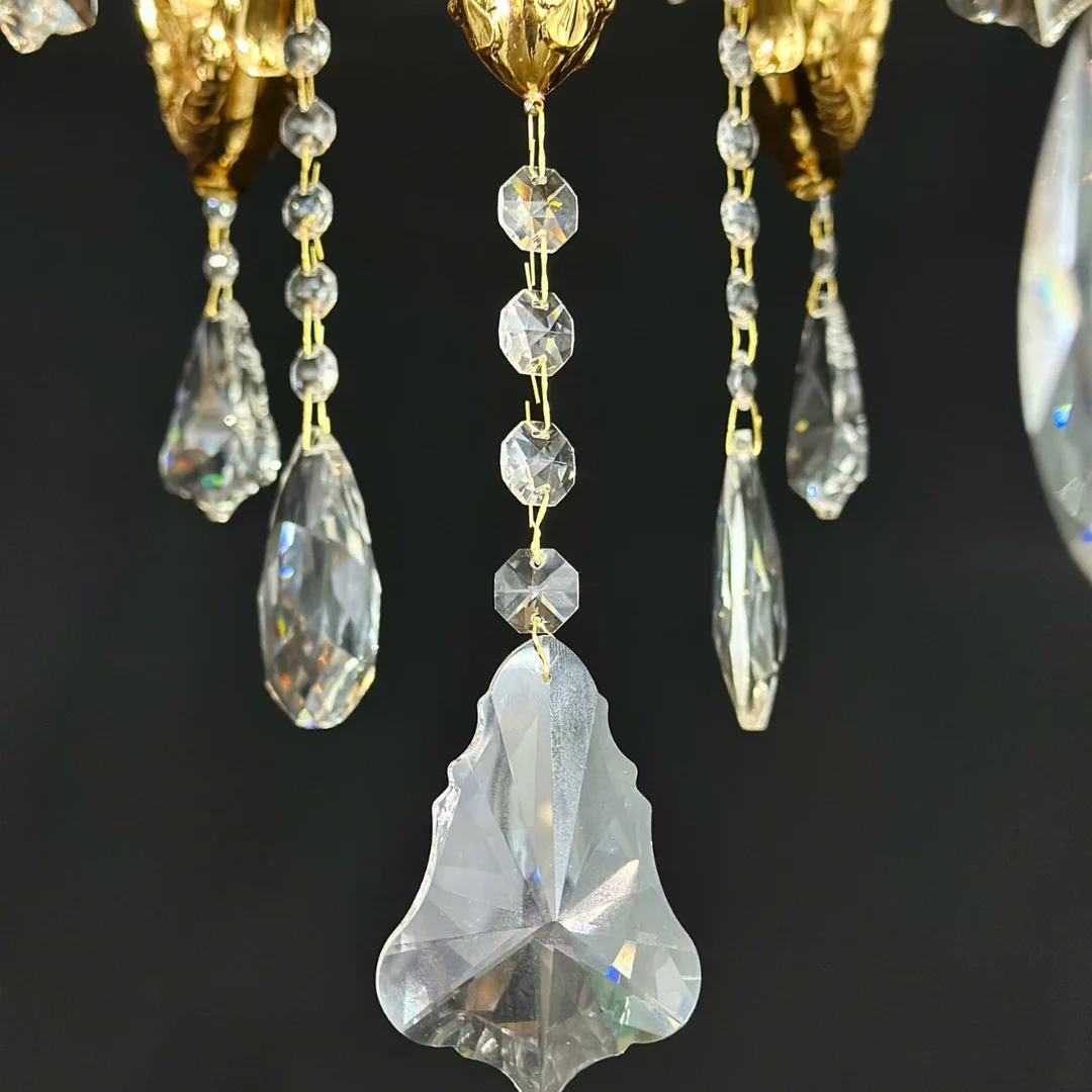 Điểm nhấn của DC6239 nằm ở hệ pha lê K9: chuỗi hạt và giọt thả nhiều lớp được bố trí dọc tay đèn và phía dưới chao, giúp ánh sáng phản chiếu rõ và tạo hiệu ứng lấp lánh đẹp vào buổi tối. Sự kết hợp giữa chao đá cao cấp và pha lê K9 giúp đèn vừa có ánh sáng êm để dùng hằng ngày, vừa đủ nổi bật để làm món trang trí trung tâm cho phòng khách hoặc sảnh tiếp khách.