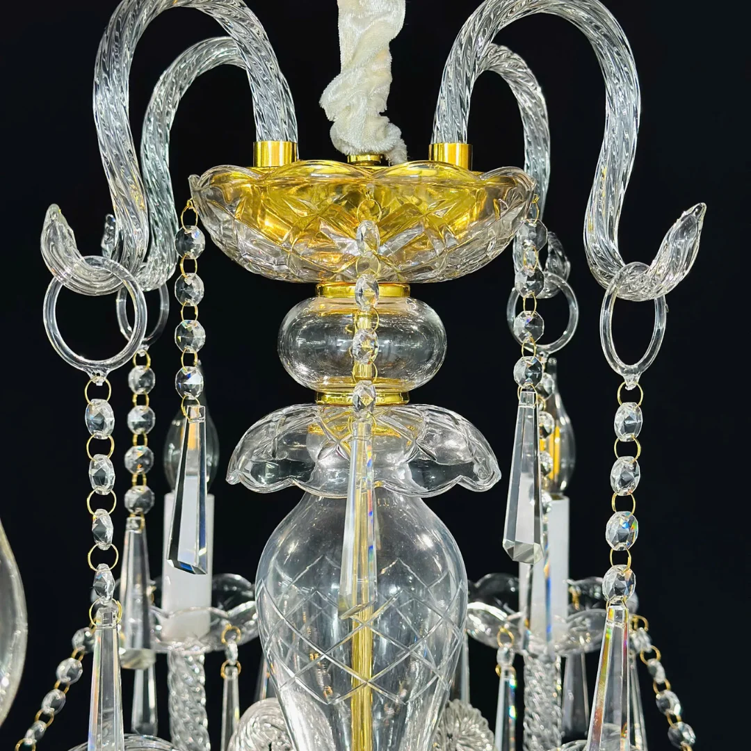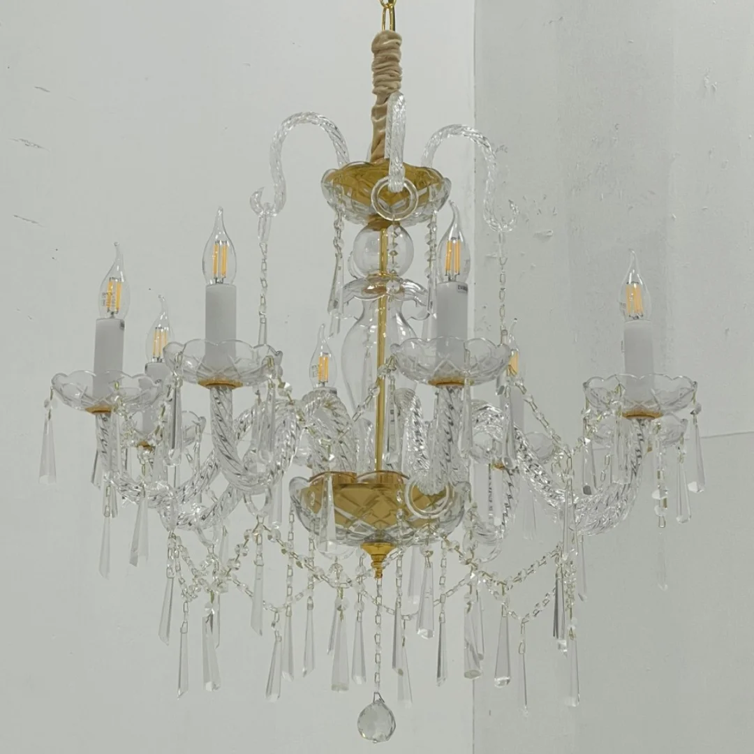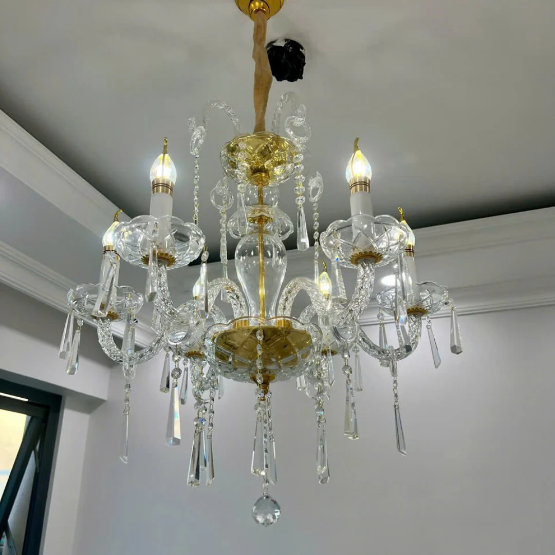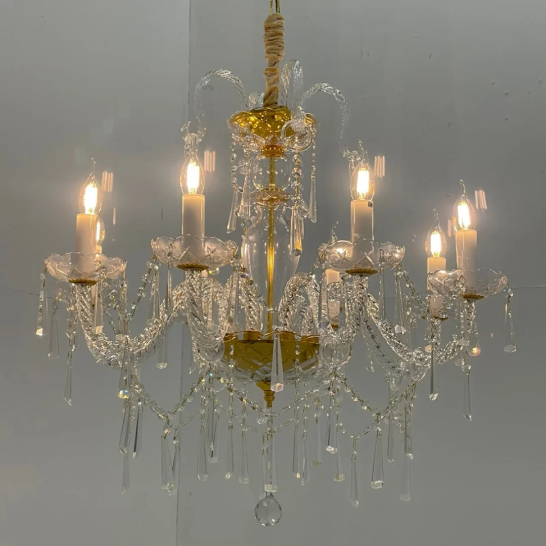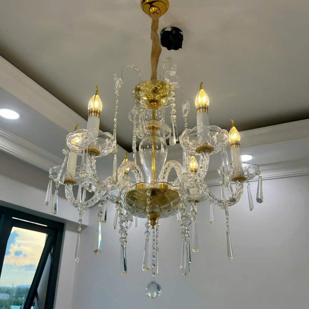 Đèn Chùm Pha Lê DC9178 được thiết kế theo kiểu dáng chùm nến cổ điển, với tay đèn uốn cong mềm mại, tạo nên sự thanh thoát nhưng không kém phần sang trọng. Đèn sử dụng pha lê cao cấp, giúp ánh sáng khi bật sáng trở nên lung linh, tạo ra những hiệu ứng phản chiếu đẹp mắt trong không gian.