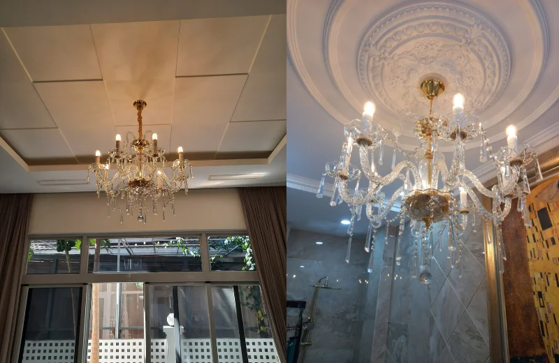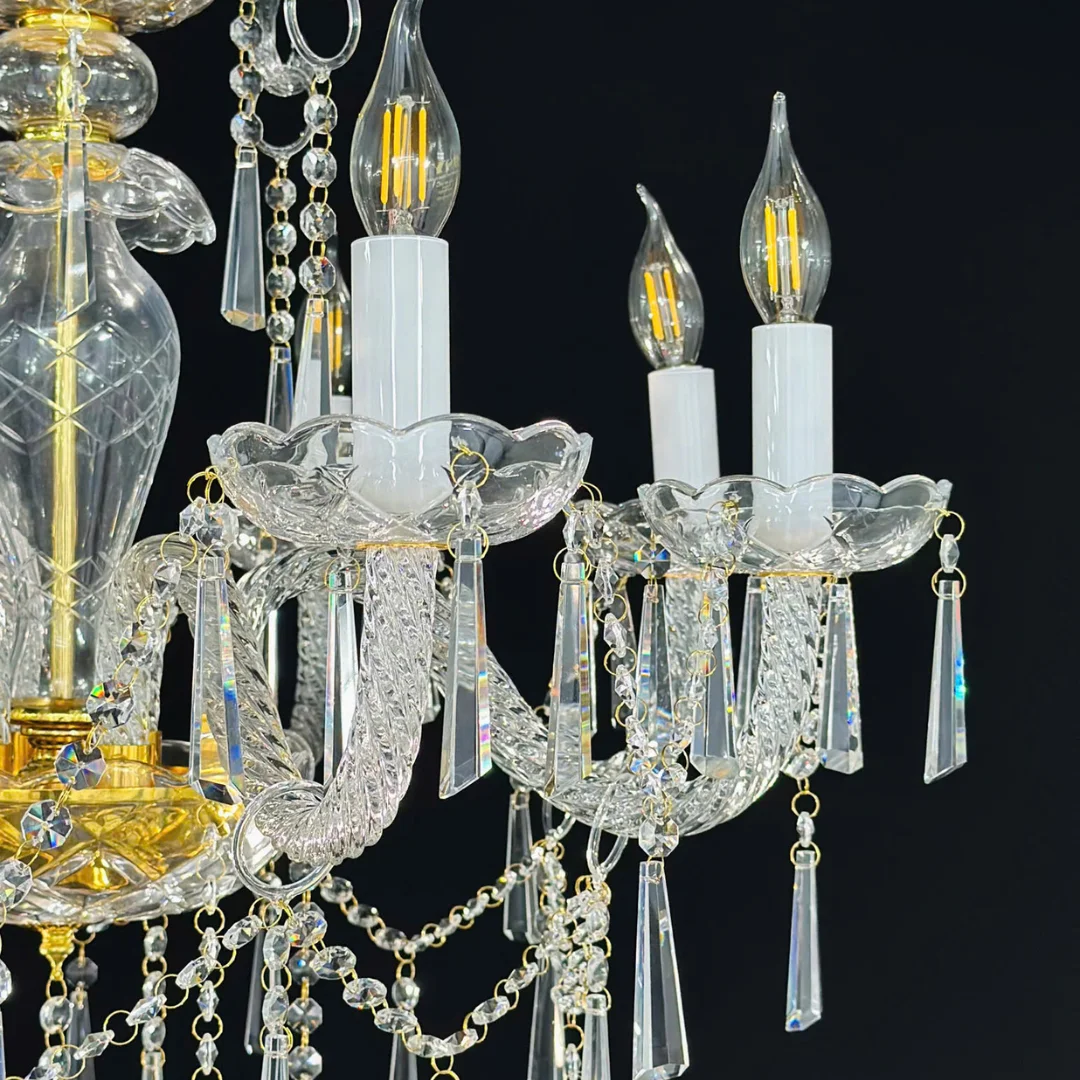 Pha lê cao cấp cho ánh sáng trong suốt, tạo hiệu ứng lung linh và không gian ấm áp.