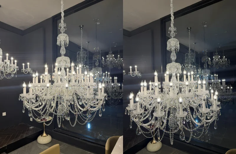 Hiệu ứng ánh sáng cuốn hút: Pha lê phản chiếu tốt giúp ánh sáng lung linh, tạo chiều sâu cho không gian vào buổi tối.