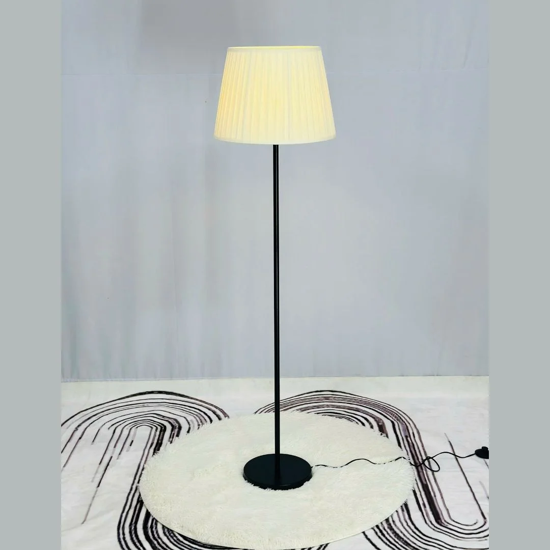 Đèn Đứng DD211 có thân đèn dạng trụ thẳng, rất mảnh và cao, tạo cảm giác không gian thoáng hơn, không bị nặng nề. Đế tròn kích thước lớn hơn thân, giúp đèn đứng vững trên nhiều loại sàn khác nhau. Phần chao vải hình nón cao, xếp ly đều xung quanh, ôm trọn nguồn sáng bên trong. Khi bật đèn, ánh sáng vàng ấm xuyên qua lớp vải gấp nếp, tạo nên vùng sáng nhẹ, lan đều khắp khu vực xung quanh, phù hợp cho việc thư giãn, trò chuyện hoặc đọc sách.
