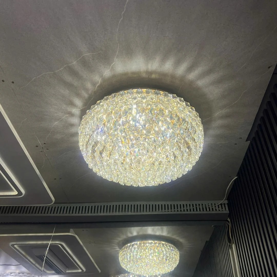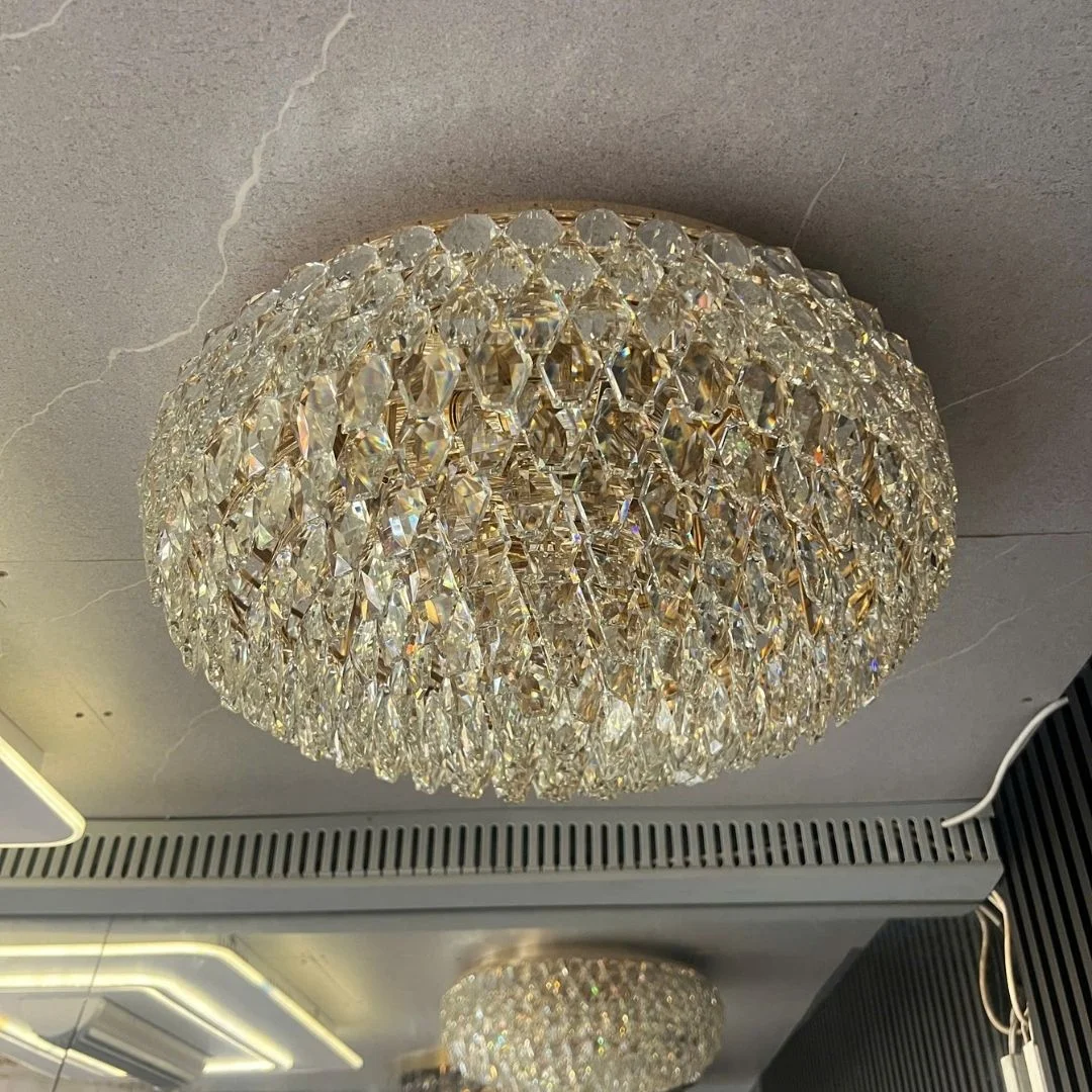 Sự kết hợp giữa hình dáng gọn gàng và chi tiết pha lê tinh xảo giúp mẫu đèn này vừa có tính trang trí cao, vừa không tạo cảm giác nặng nề cho trần nhà. Đây là ưu điểm lớn với các không gian cần sự sáng sủa, thoáng mắt nhưng vẫn muốn giữ nét cao cấp.