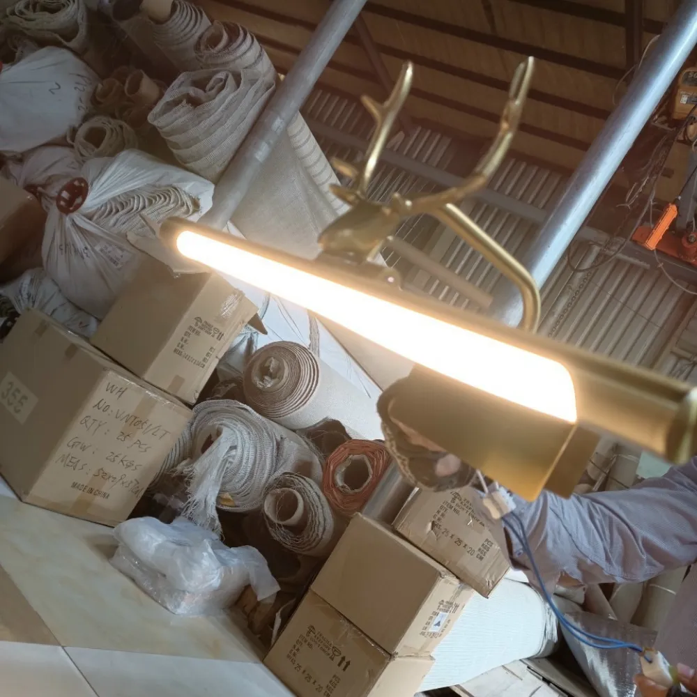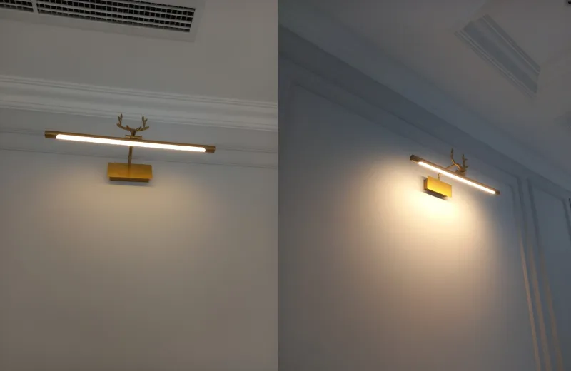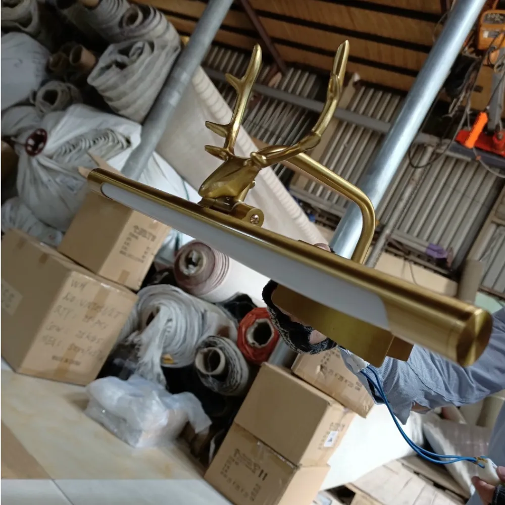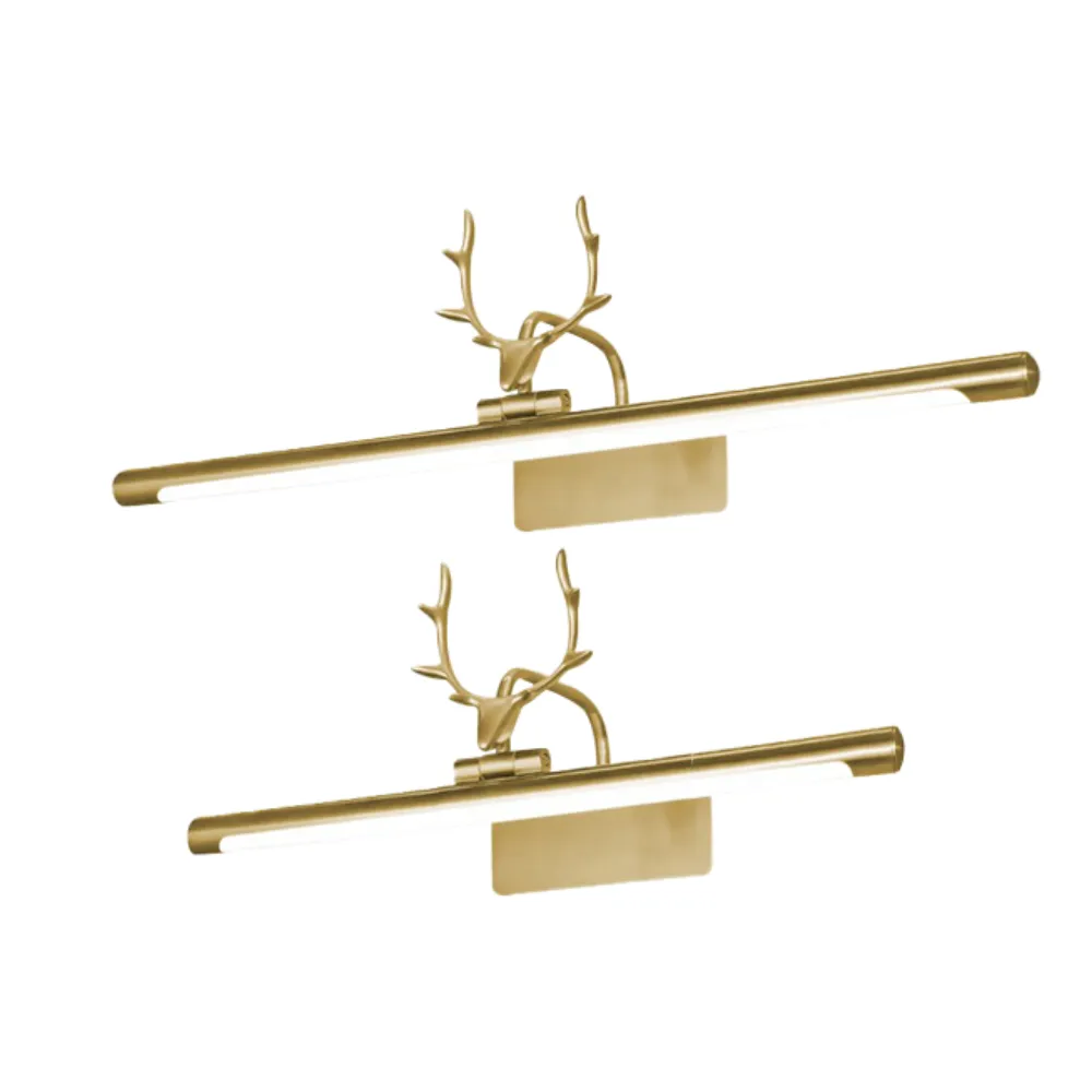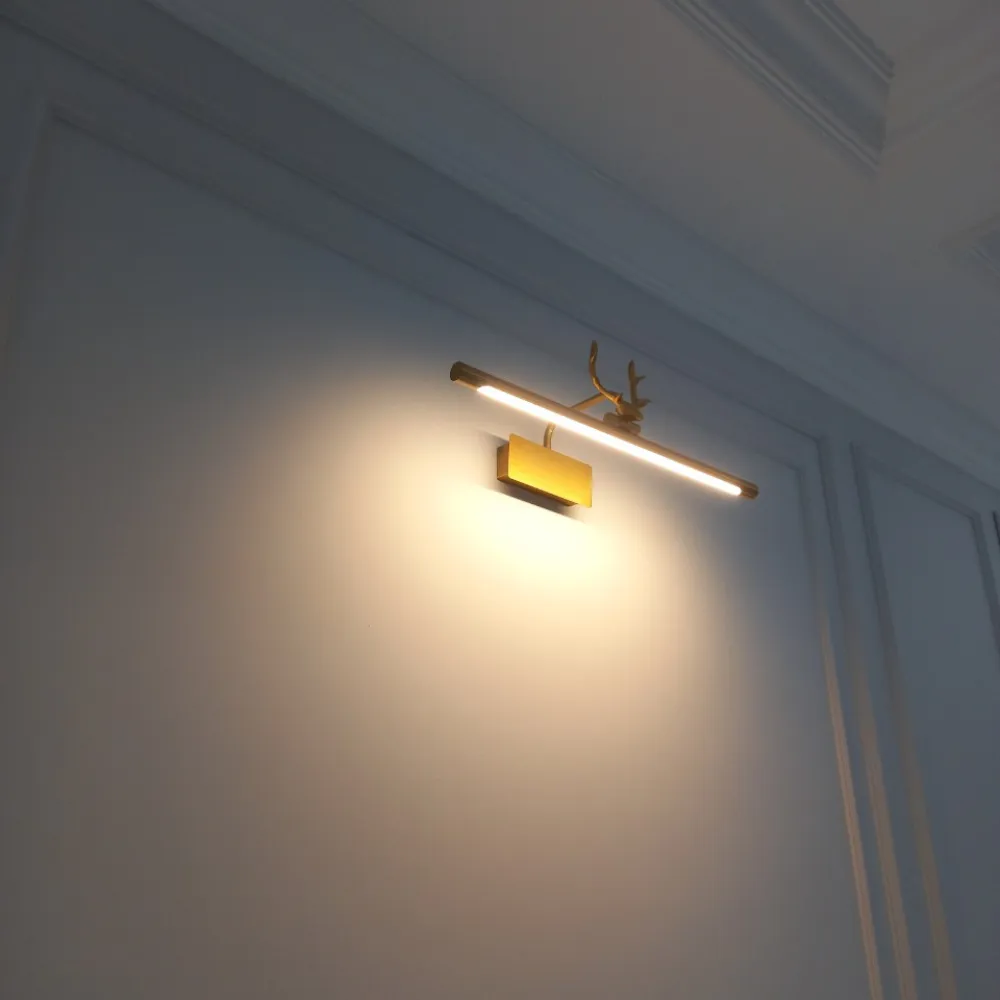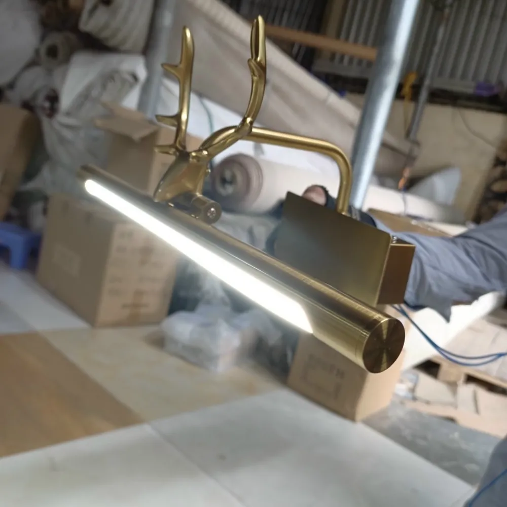 Sản phẩm gây ấn tượng với thiết kế thanh đèn dài thanh lịch kết hợp chi tiết gạc hươu độc đáo, mang đến sự khác biệt và cá tính cho không gian. Khi ánh sáng được bật lên, đèn tạo hiệu ứng chiếu sáng mềm mại, giúp bức tranh trở nên nổi bật mà không gây chói mắt.