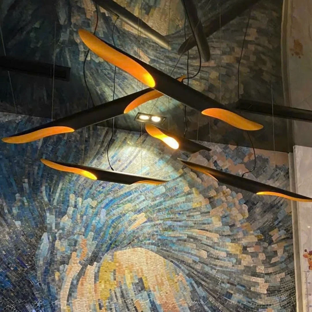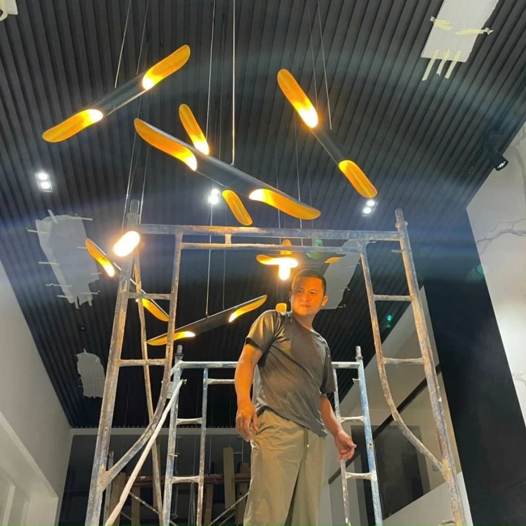 Đèn Thả Cafe TCF24 có kiểu dáng hình học rất đặc biệt với các thanh kim loại uốn cong mềm mại. Khi lắp đèn trong không gian, sản phẩm không chỉ chiếu sáng mà còn tạo điểm nhấn trang trí ấn tượng. Thiết kế này mang lại cảm giác mới mẻ và sáng tạo, rất phù hợp với không gian hiện đại, tối giản hoặc mang phong cách công nghiệp nhẹ.