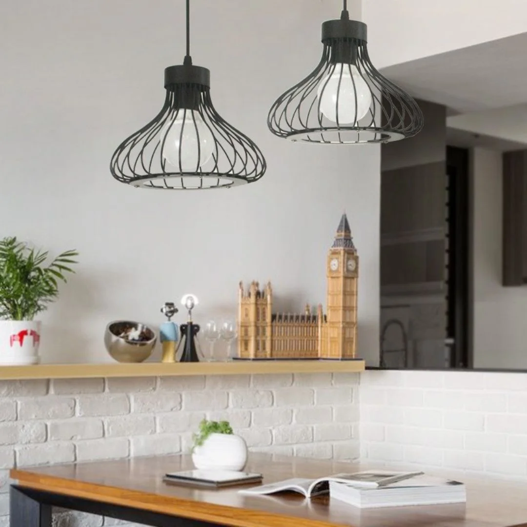 Nhìn tổng thể, Đèn Thả Cafe TCF30 có form dáng khung mở với các đường nét kim loại uốn cong đều, giúp sản phẩm vừa làm đèn chiếu sáng vừa đóng vai trò như một chi tiết decor nổi bật. Phiên bản TCF30T1 thích hợp để tạo điểm nhấn đơn lẻ, nhẹ nhưng đủ ấn tượng cho bàn nhỏ hoặc góc ngồi. Phiên bản TCF30T3 lại phù hợp với bàn ăn dài, quầy bar hoặc khu vực trung tâm cần bố cục ánh sáng đồng đều và thẩm mỹ hơn. Thiết kế hở giúp ánh sáng lan tỏa đẹp hơn và làm bóng đèn trở thành một phần của tổng thể trang trí.