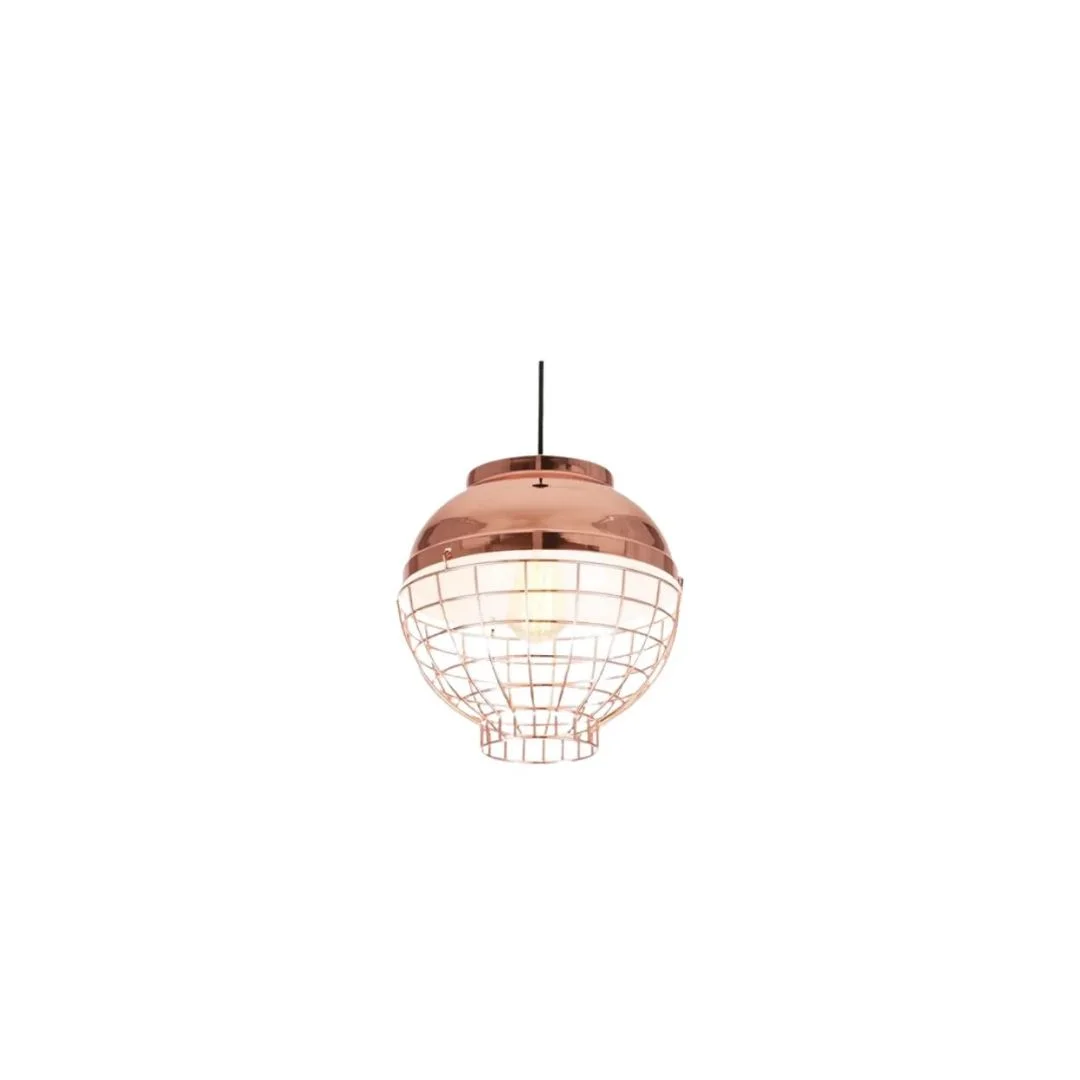 Đèn Thả Cafe TCF90 có thiết kế nổi bật nhờ sự kết hợp giữa phần thân trên dạng khối tròn kín và phần dưới là lớp khung lưới kim loại dạng cong. Kiểu bố cục này giúp sản phẩm vừa có nét mềm mại, vừa tạo được cảm giác khác biệt rõ ràng so với các mẫu đèn thả phổ biến. Khi nhìn trực diện, tổng thể đèn mang lại cảm giác cân đối, sang trọng và đủ sức tạo điểm nhấn cho khu vực bên dưới.