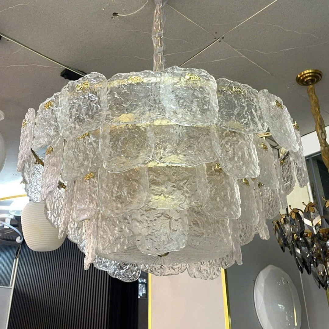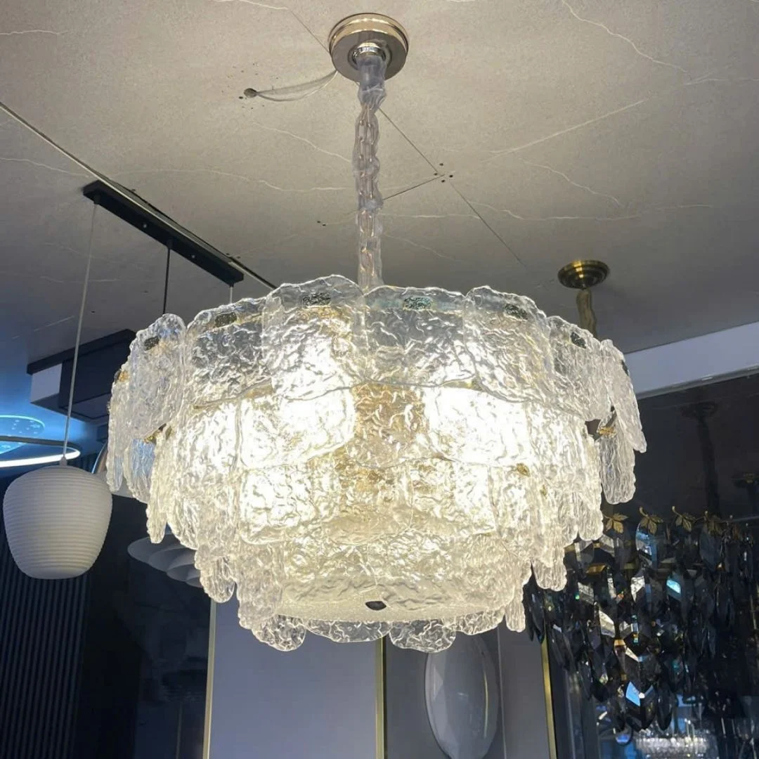Về kiểu dáng, đèn Thả Pha Lê TPL009 được tạo hình theo dạng khối tròn nhiều tầng, các bản pha lê xếp lớp từ trên xuống dưới tạo cảm giác bồng bềnh nhưng chắc chắn. Bề mặt pha lê có tạo hình nhám nhẹ, giống hiệu ứng băng tan, nhờ đó ánh sáng không chói lóa mà trở nên mềm mại hơn. Khi nhìn trực diện, người dùng dễ dàng cảm nhận độ sâu của từng lớp pha lê, giúp chiếc đèn trở thành điểm nhấn chính giữa không gian.