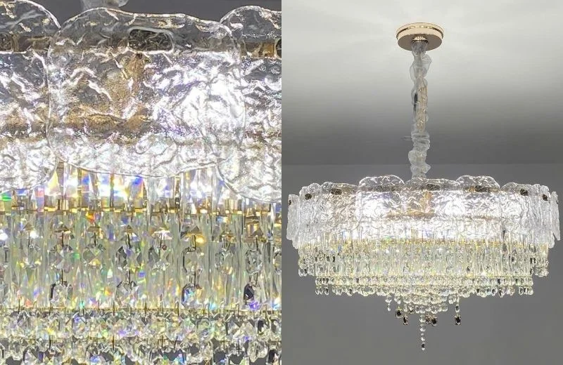 Pha lê K9 được ưa chuộng trong nhóm đèn trang trí vì có độ trong cao, khả năng tán quang tốt, bề mặt cắt sắc nét giúp ánh sáng rõ “chất pha lê” và nhìn sang hơn khi lên đèn.