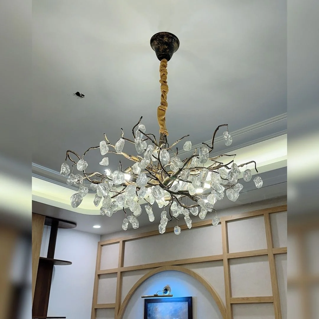 - Pha lê phản chiếu ánh sáng đẹp, mang lại cảm giác sang trọng và ấm áp cho căn phòng.