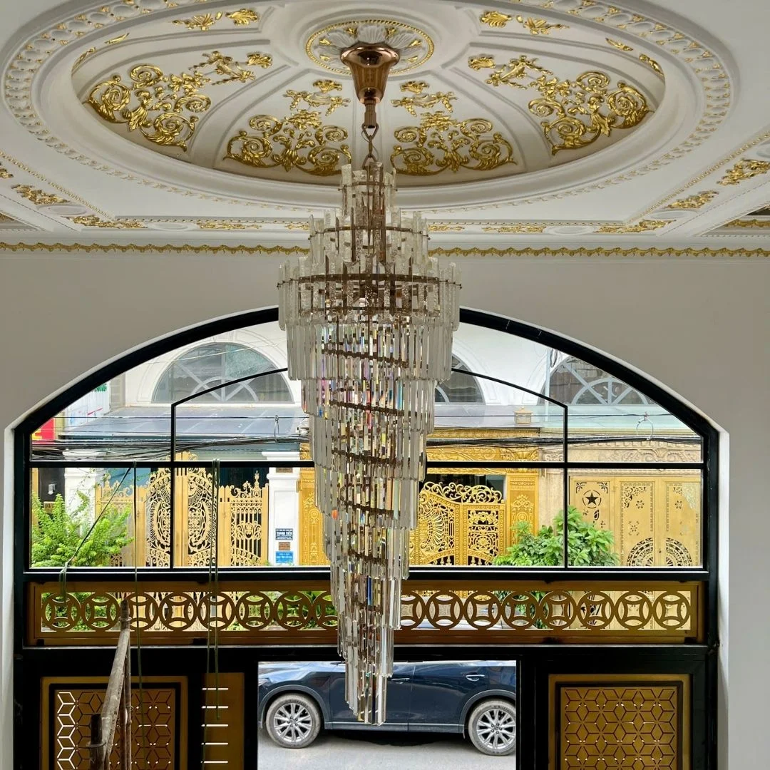 Đèn thả pha lê TPL6289 có dáng thả tầng thuôn dài, các lớp pha lê được xếp theo nhịp từ trên xuống dưới, tạo cảm giác gọn gàng và thanh lịch. Pha lê trong suốt giúp bề mặt đèn nhìn sáng và sạch, đồng thời phản chiếu ánh sáng rõ khi lên đèn. Chất liệu khung hợp kim cao cấp giúp đèn chắc chắn, giữ form ổn định và phù hợp treo lâu dài ở vị trí trung tâm. Tổng thể thiết kế dễ phối nội thất, đặc biệt với không gian ưa phong cách sang trọng nhưng không quá cầu kỳ.