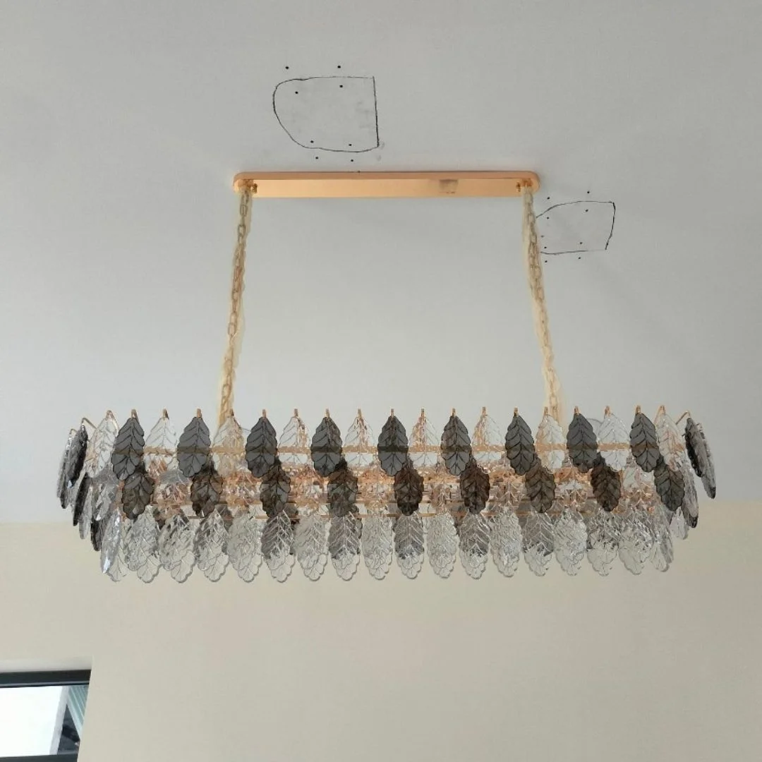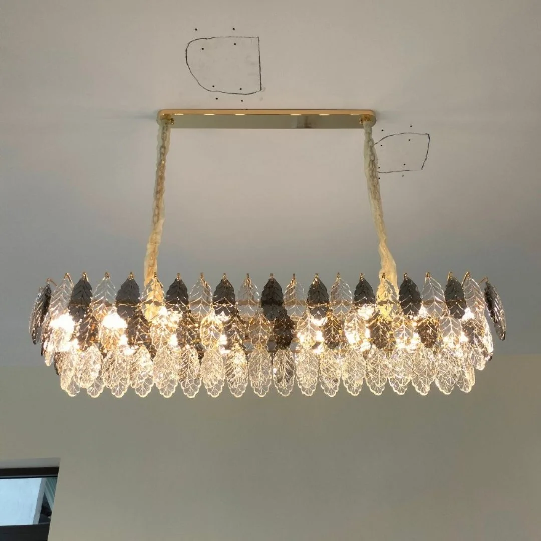 Mẫu đèn thả pha lê TPL8021N900 có điểm nổi bật ở cụm pha lê xếp lớp tạo hình mềm, khi treo lên nhìn “đầy” nhưng không nặng nề. Form đèn dài giúp tổng thể gọn, đặc biệt hợp với bàn ăn dài hoặc đảo bếp vì ánh sáng không bị tập trung một điểm. Khi bật đèn, pha lê phản chiếu tạo những điểm sáng li ti, làm không gian trông sang và có chiều sâu.