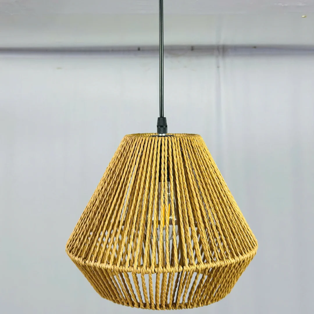 TTK205 nổi bật nhờ form chao đèn đan thủ công có tỷ lệ gọn, nhìn “vừa vặn” khi treo một chiếc hoặc treo theo cụm 2–3 chiếc. Phần thân chao bo tròn mềm, các sợi mây tre được đan thoáng, tạo hiệu ứng ánh sáng hắt ra tự nhiên và có chiều sâu. Khi bật đèn, ánh sáng xuyên qua các khe đan tạo thành những vệt sáng nhẹ, giúp mảng tường và trần trông sinh động hơn mà không bị chói.