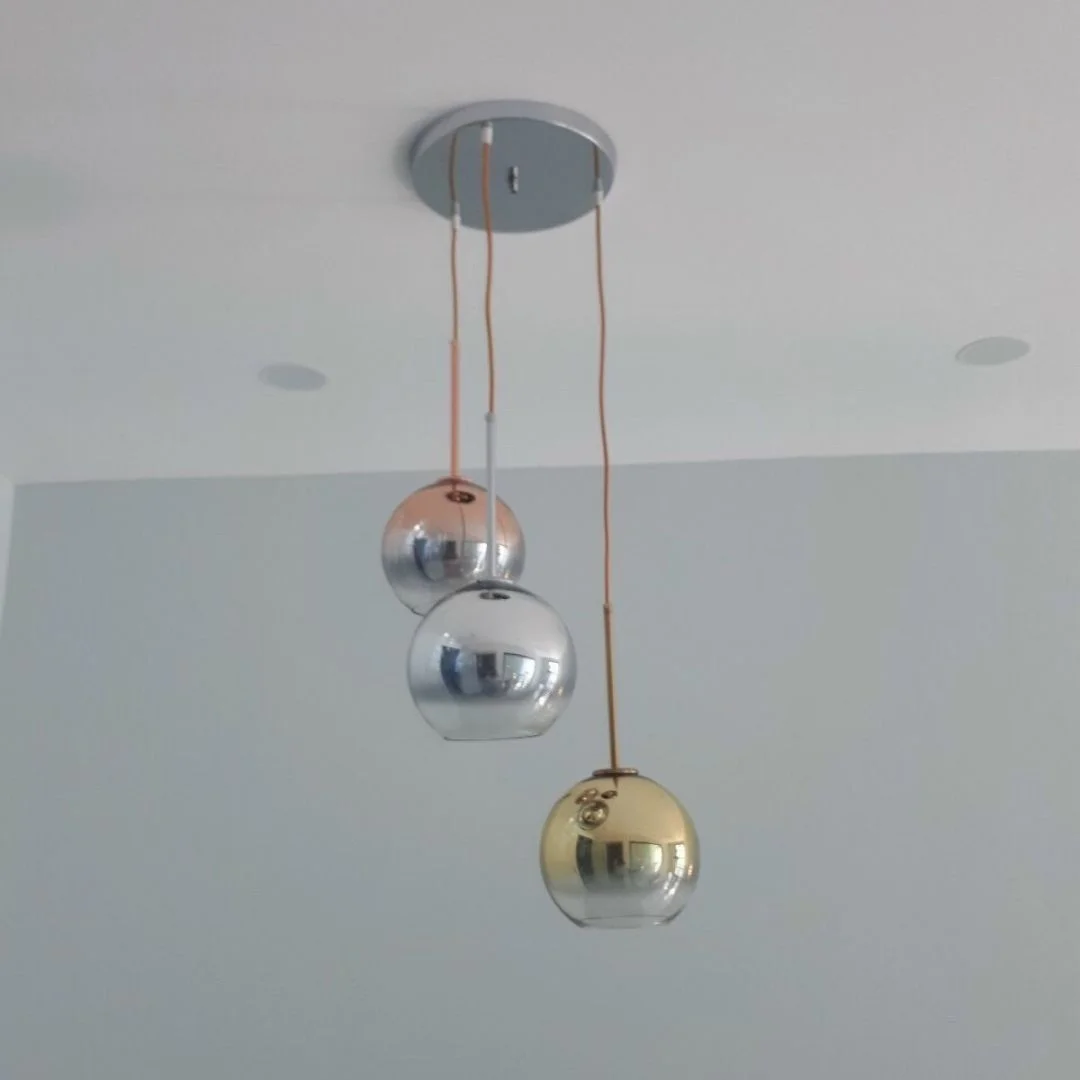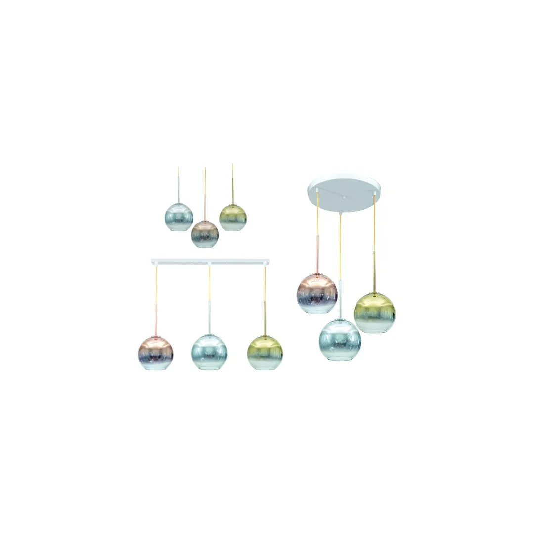 Điểm nổi bật của Đèn Thả Trần TT17 nằm ở thiết kế chao tròn nhỏ gọn kết hợp hiệu ứng chuyển màu nhẹ trên bề mặt thủy tinh, tạo cảm giác mềm mại và trong trẻo khi lắp đặt trong không gian. Mỗi phiên bản màu mang một nét riêng, giúp người dùng dễ lựa chọn theo phong cách tổng thể, từ ấm áp, thanh lịch đến trẻ trung hơn. Khi sử dụng đơn lẻ, sản phẩm tạo cảm giác gọn gàng và tinh tế; khi treo theo cụm, đèn lại giúp khu vực lắp đặt trở nên nổi bật và có điểm nhấn rõ ràng hơn.