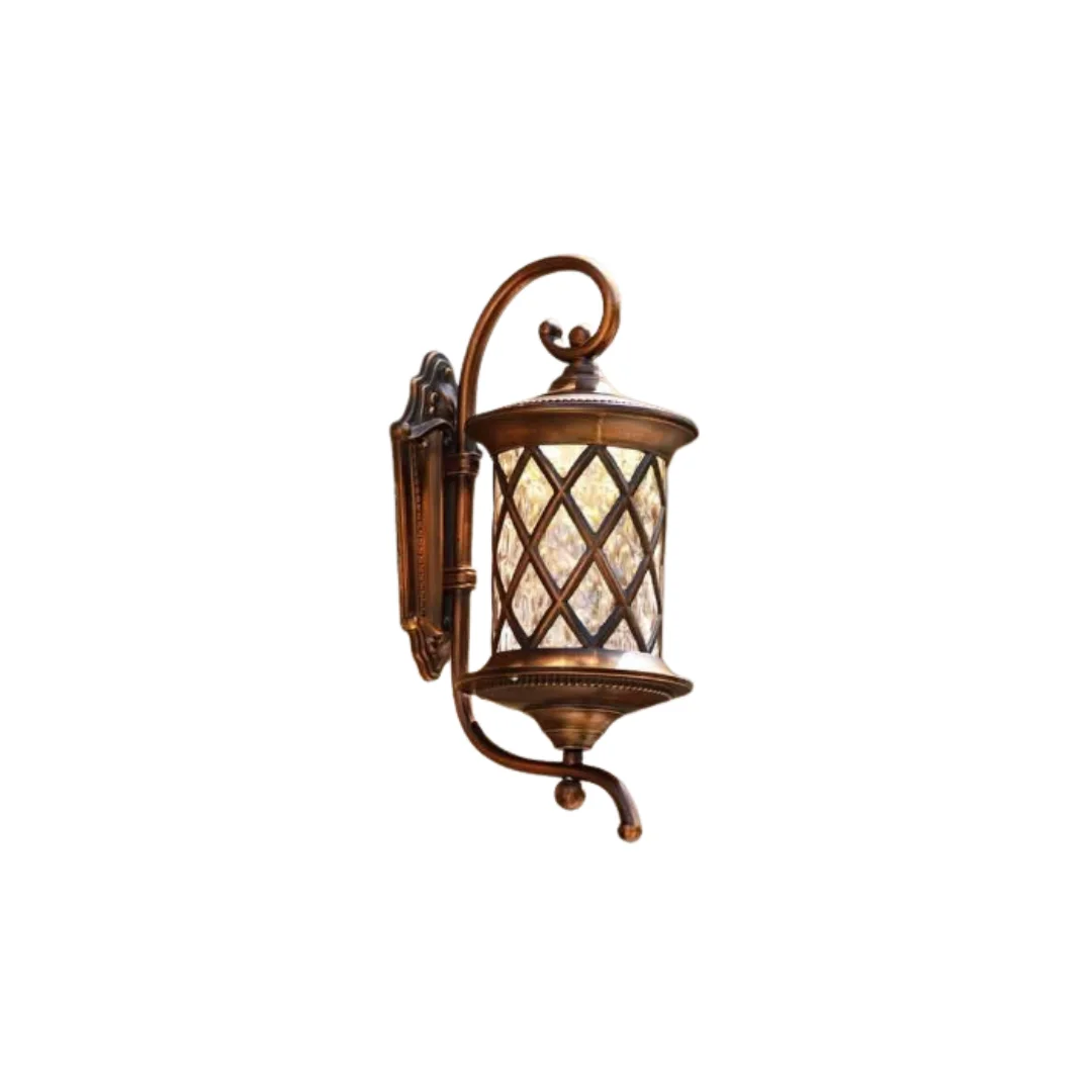 Khung đèn tông màu đồng cho cảm giác ấm và sang, dễ phối với cổng sắt, tường đá, gạch lát hoặc ngoại thất tân cổ điển. Phần kính xử lý họa tiết giúp ánh sáng xuyên qua rõ ràng nhưng vẫn dịu mắt. Khi sử dụng bóng E27 ánh vàng ấm, đèn tạo không khí thân thiện, ấm cúng và nổi bật hơn vào ban đêm.