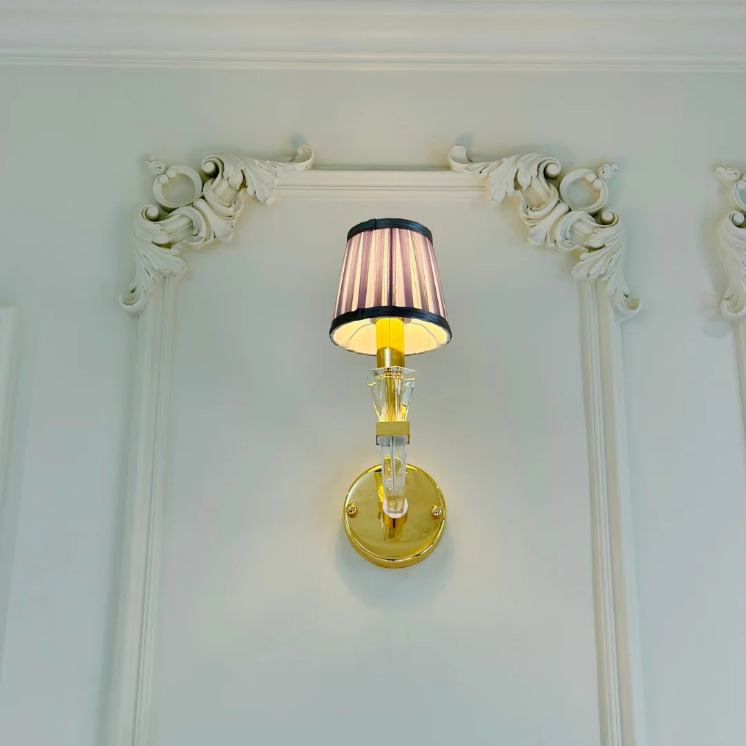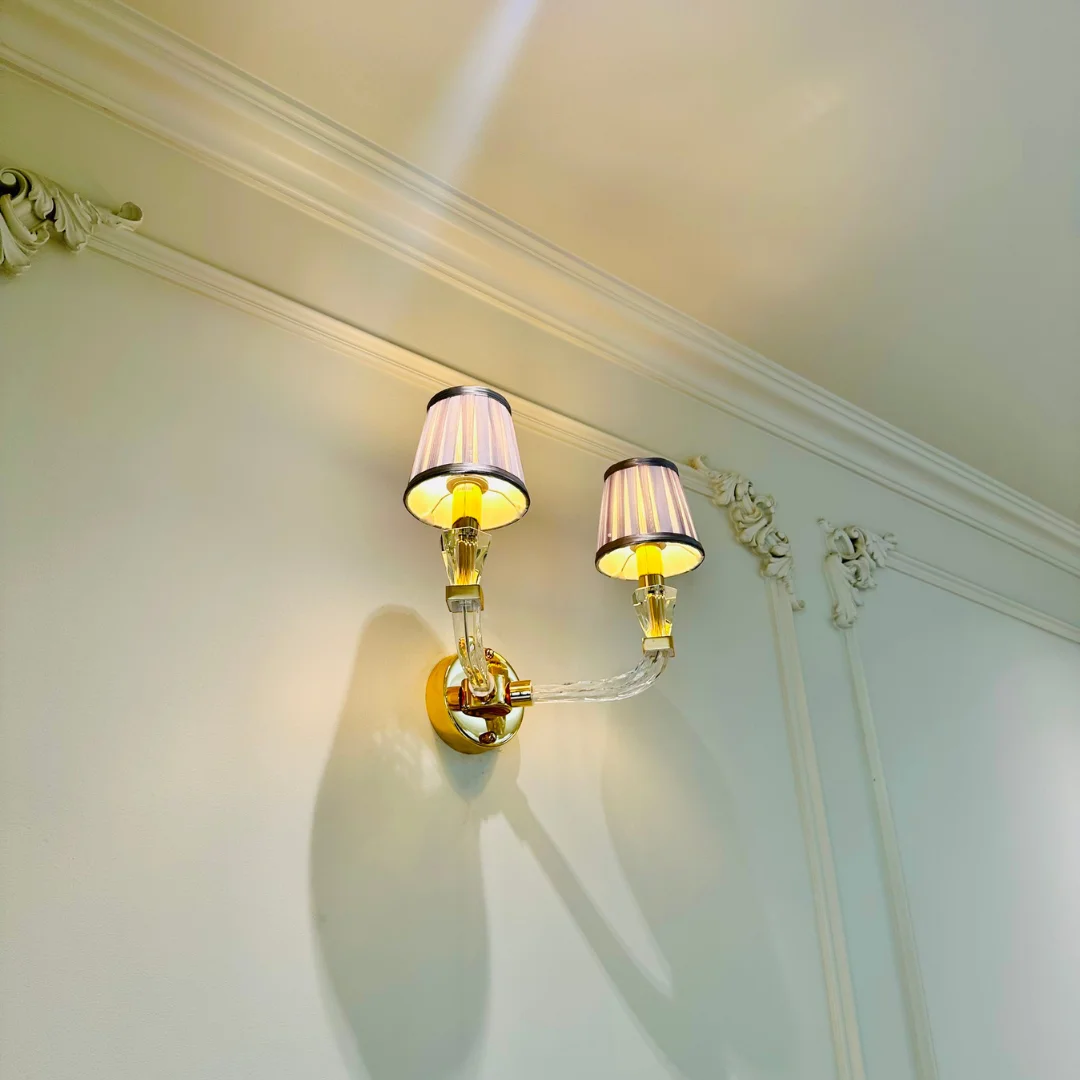 Dựa trên hình ảnh sản phẩm, VDC8898 kết hợp giữa tay đèn dạng pha lê hoặc thủy tinh trong, đế gắn tường ánh kim vàng và chao đèn trang trí sáng màu. Chất liệu trong suốt ở tay đèn giúp sản phẩm có độ bắt sáng tốt và tạo cảm giác cao cấp hơn khi nhìn trực tiếp. Phần kim loại hoàn thiện ánh vàng vừa tạo điểm nhấn ấm áp, vừa giúp kết cấu chắc chắn và bền trong quá trình sử dụng. Chao đèn giúp ánh sáng dịu hơn, rất phù hợp với những khu vực cần sự thư giãn và dễ chịu về thị giác.