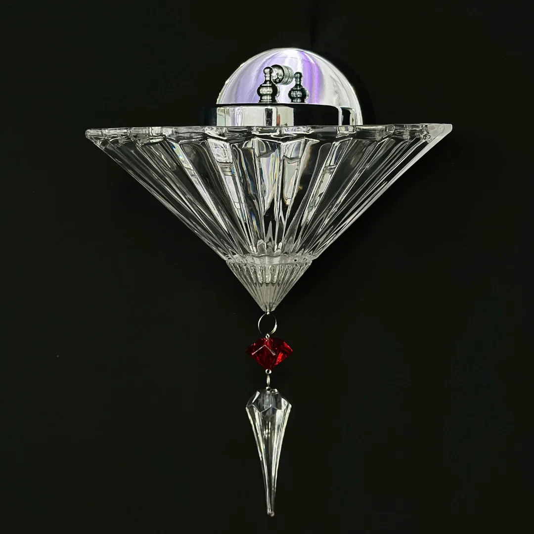 Đèn Tường Pha Lê VDC9008 có hình thức rất dễ tạo ấn tượng nhờ cấu trúc xòe rộng ở phần trên và thu nhọn xuống dưới như một khối pha lê được tạo hình tinh xảo. Nhờ thiết kế này, chiếc đèn có cảm giác gọn nhưng không đơn điệu, đặc biệt nổi bật khi lắp trên nền tường tối hoặc những vị trí cần tăng tính decor. Phần chi tiết treo phía dưới làm cho tổng thể mềm hơn, giúp chiếc đèn không bị cứng dù mang thiết kế hình học rõ nét.