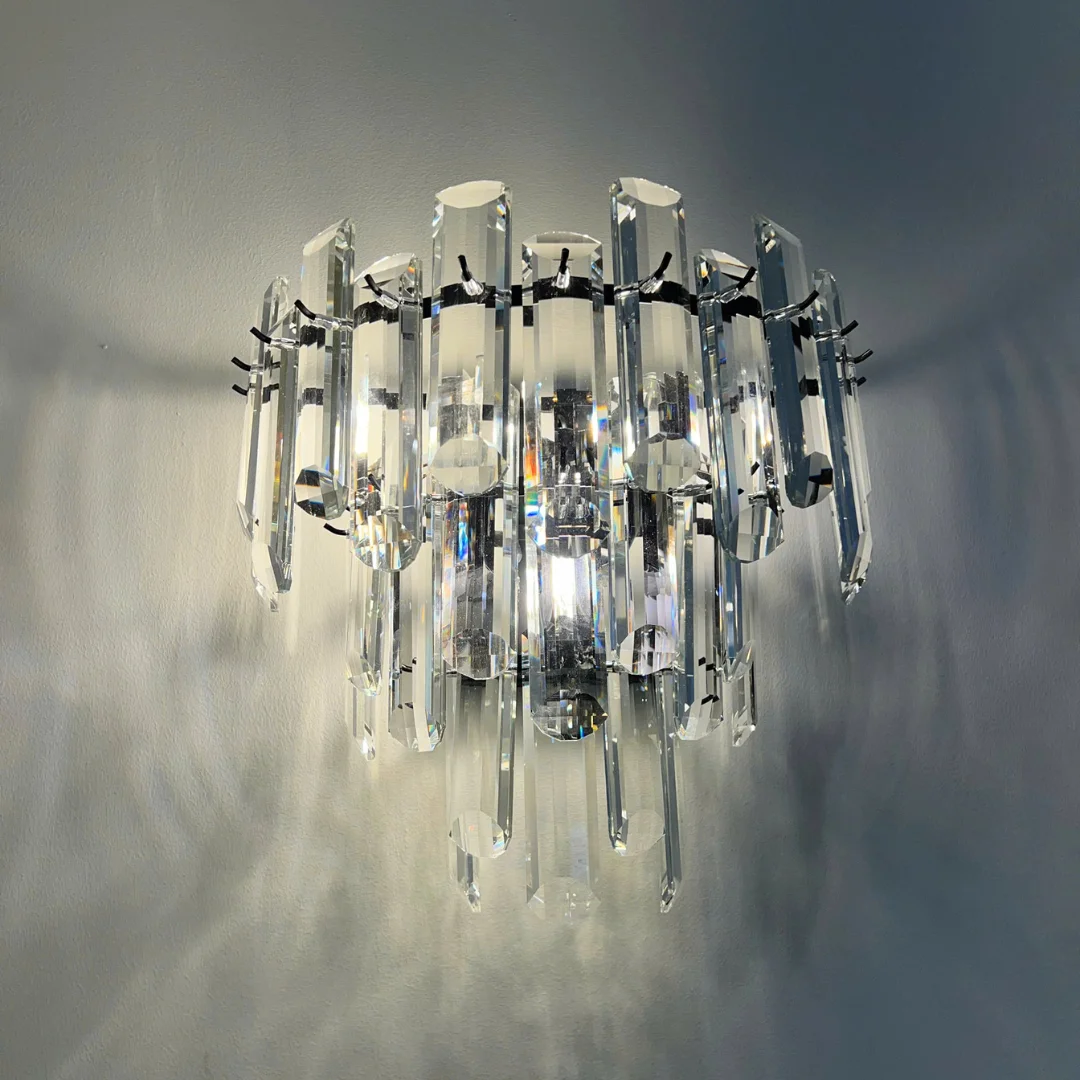 Đèn Tường Pha Lê VPL8188 có thiết kế khá đầy đặn, phần thân đèn được bao phủ bởi nhiều thanh pha lê rủ xếp lớp tạo nên hiệu ứng sang trọng ngay cả khi chưa bật sáng. So với những mẫu đèn tường gọn đơn giản, VPL8188 nổi bật hơn nhờ độ phản chiếu tốt và hình thức có chiều sâu. Đây là kiểu dáng rất phù hợp với những bức tường trung tâm hoặc các khu vực cần tạo cảm giác đắt giá hơn cho nội thất.