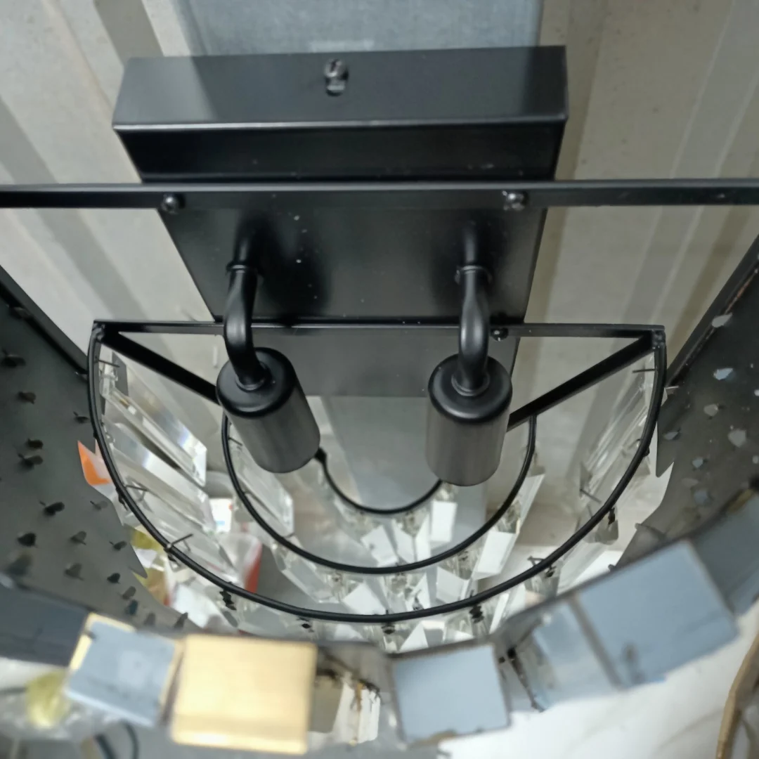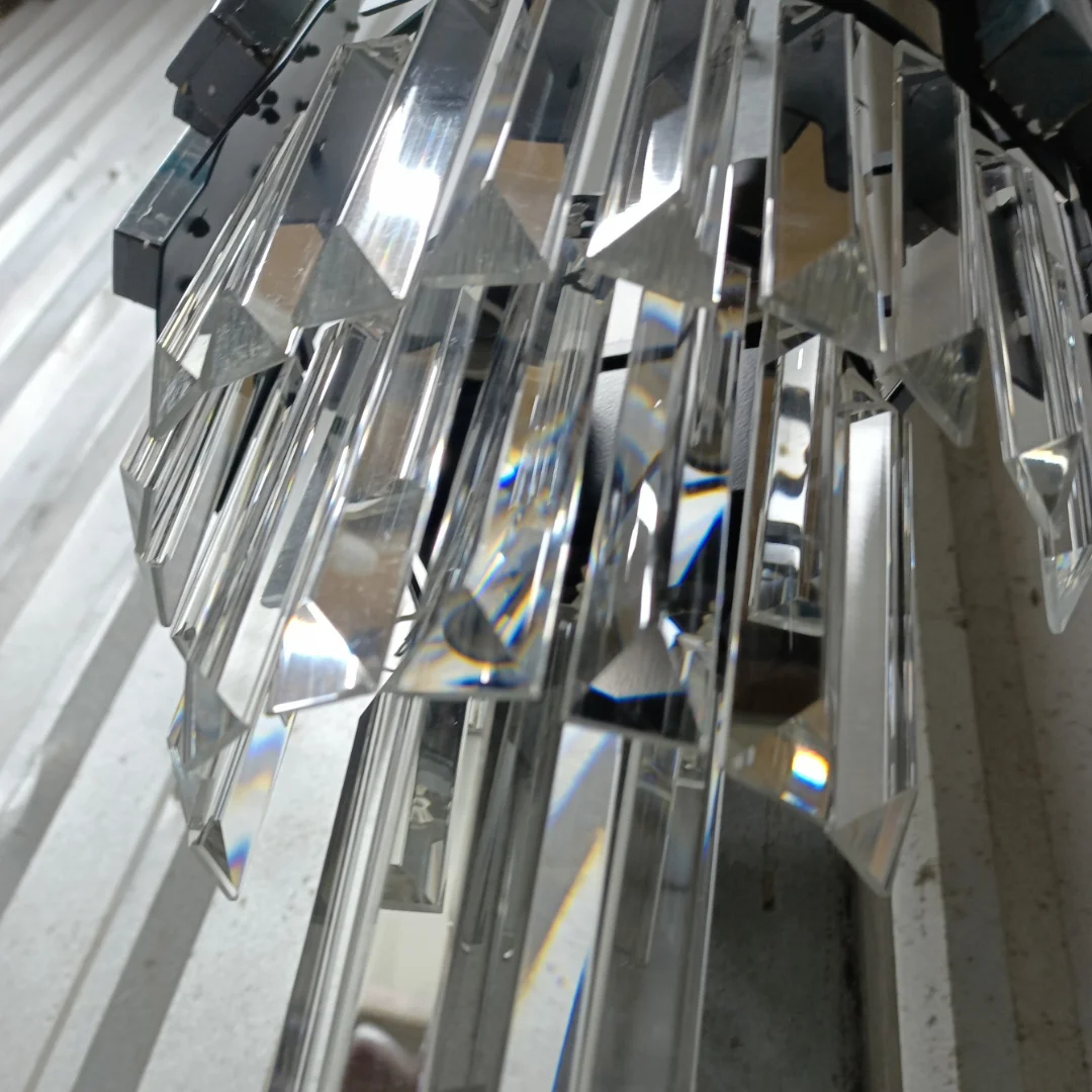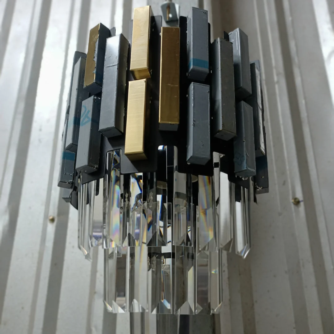 Sản phẩm được hoàn thiện từ pha lê và khung kim loại, trong đó pha lê đóng vai trò làm ánh sáng đẹp hơn và tạo cảm giác không gian có chiều sâu hơn. Phần khung kim loại ánh vàng giữ cấu trúc đèn ổn định, đồng thời tăng vẻ sang trọng cho tổng thể. Nhờ vậy, mẫu đèn vừa đáp ứng tốt nhu cầu làm đẹp không gian, vừa bảo đảm độ bền và sự ổn định khi sử dụng lâu dài trong nhà ở.