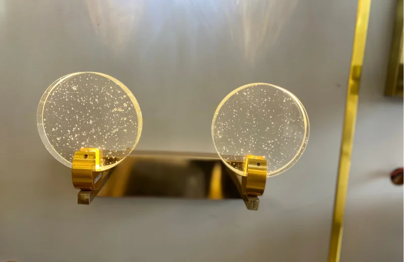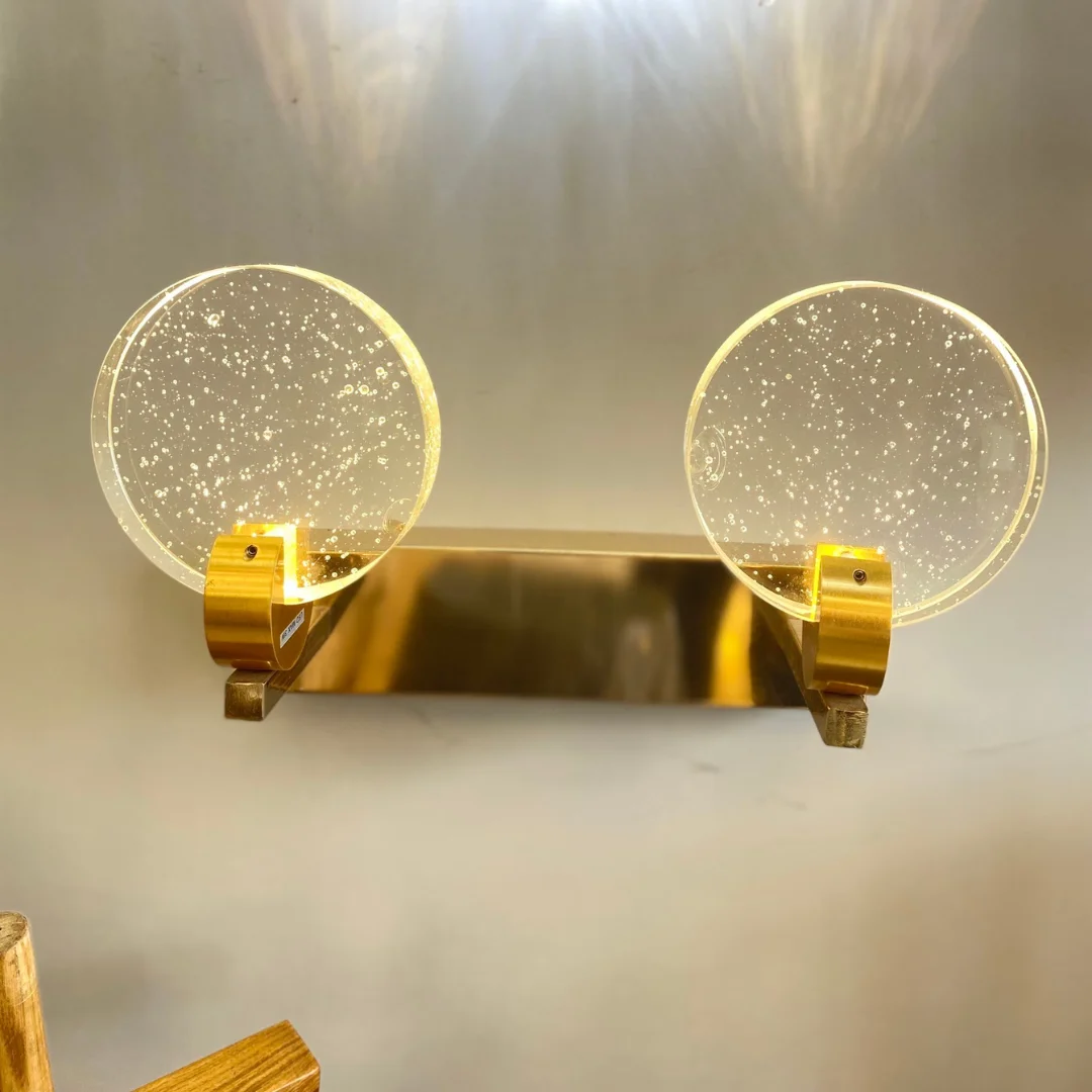 Nhìn tổng thể, Đèn Tường Pha Lê VPL8829 mang tinh thần hiện đại khá rõ. Đường ngang của phần đế tạo sự chắc chắn, trong khi các mặt tròn phía trên giúp tổng thể mềm hơn và bớt khô cứng. Đây là kiểu thiết kế rất hợp với những không gian hiện đại vì vừa có nét tối giản, vừa không bị đơn điệu. Bản T1 chỉ có một vòng tròn nên phù hợp với vị trí nhỏ hoặc nhu cầu trang trí nhẹ. Bản T2 có hai vòng tròn cân đối hơn, giúp tạo cảm giác đầy đặn và nổi bật hơn trên mảng tường.