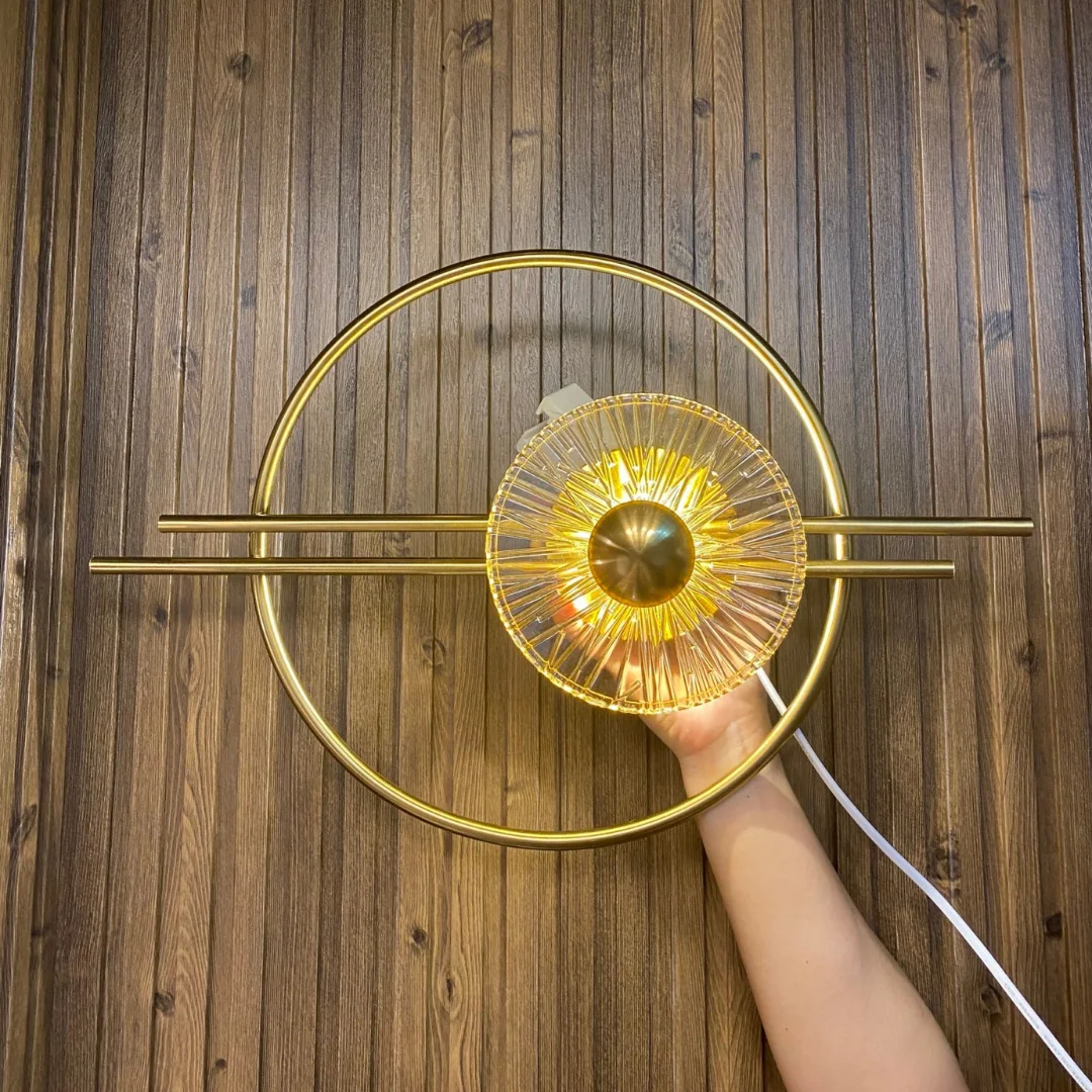 Đèn Tường Thiết Kế VK121 có thiết kế rất dễ nhận diện với một vòng tròn lớn làm khung chính, kết hợp hai thanh ngang chạy xuyên qua tâm đèn. Cách tạo hình này khiến chiếc đèn trông vừa như một món decor treo tường, vừa như một nguồn sáng nghệ thuật có tính sắp đặt. So với những mẫu đèn tường truyền thống, VK121 cho cảm giác mới hơn, nhẹ hơn và rất phù hợp với các bức tường cần nhấn mạnh cá tính thẩm mỹ.