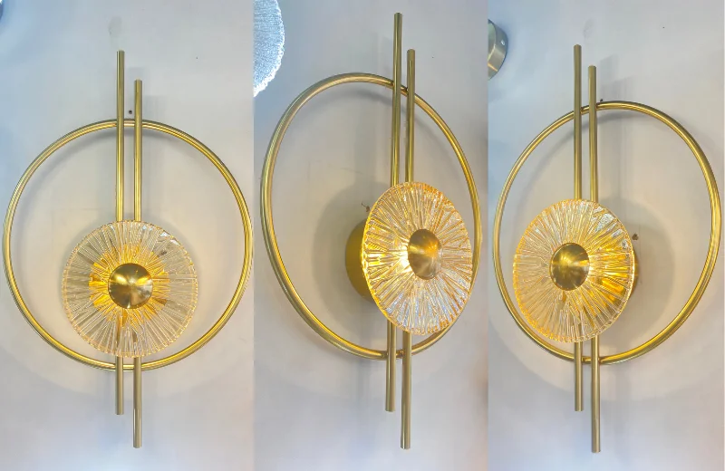 Sản phẩm nhìn từ ảnh có phần khung kim loại ánh vàng cùng vùng sáng LED 3000K lan mềm từ trung tâm. Chi tiết giữa có hiệu ứng tỏa tia giúp chiếc đèn nhìn nổi bật hơn và tạo chiều sâu tốt hơn khi bật sáng. Nhờ cách hoàn thiện này, VK121 rất hợp với căn hộ hiện đại, nhà phố, homestay hoặc các không gian muốn có một điểm nhấn sang mà không quá cầu kỳ.
