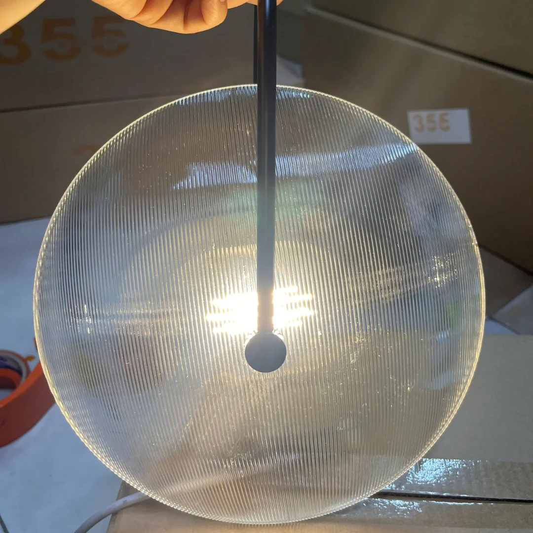 Theo hình ảnh sản phẩm, phần tay và đế đèn có vẻ được hoàn thiện bằng kim loại màu đen, tạo cảm giác chắc chắn và hiện đại. Mặt đèn trong mờ với các đường sọc dọc giúp ánh sáng tỏa ra bớt gắt, đồng thời làm sản phẩm trông có chiều sâu hơn khi nhìn gần. Đây là kiểu kết hợp phù hợp với nhu cầu sử dụng thực tế vì đẹp mắt, dễ phối với nhiều bảng màu nội thất và cũng thuận tiện trong việc giữ gìn, lau chùi.