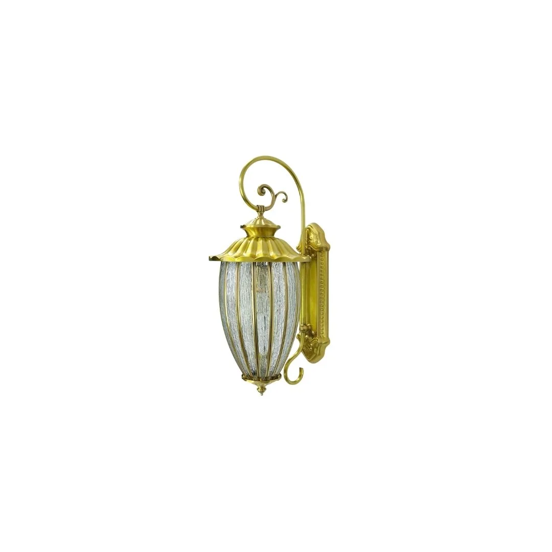 Đèn Tường VD41 giống một chiếc đèn lồng cổ được treo trên tay đèn uốn cong mềm mại. Các nan đồng chạy dọc quanh chao thủy tinh tạo cảm giác vững chãi nhưng không nặng nề. Phần đế gắn tường được trang trí những đường gờ tinh tế, khi kết hợp với ánh sáng vàng sẽ tạo nên một mảng tường rất bắt mắt.