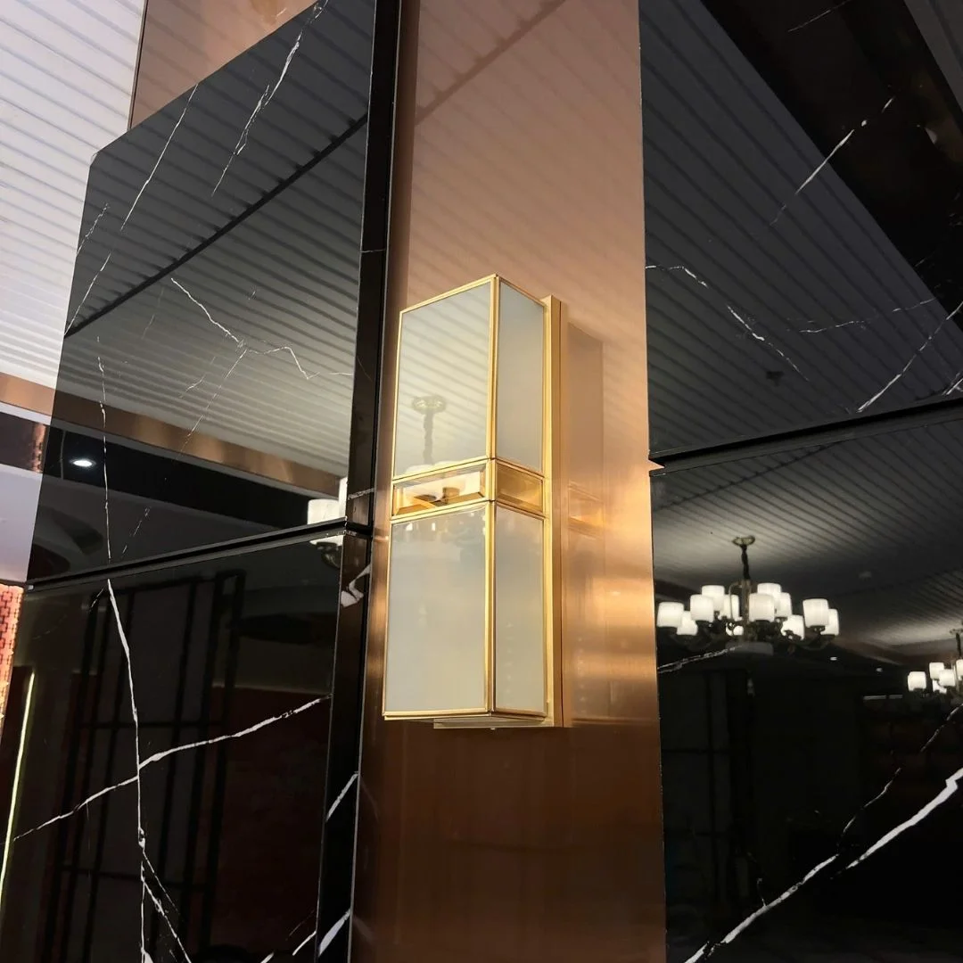 Thân đèn sử dụng chất liệu đồng chắc chắn, hạn chế gỉ sét tốt và giữ được vẻ sang trọng trong thời gian dài. Chao thủy tinh xử lý mờ giúp tán sáng đều, giảm độ chói trực tiếp, rất phù hợp dùng ở phòng ngủ hoặc lối đi cần ánh sáng nhẹ. Đui E27 là loại phổ biến, dễ tìm bóng thay thế, có thể sử dụng bóng LED để tiết kiệm điện năng và đảm bảo an toàn khi sử dụng lâu dài.