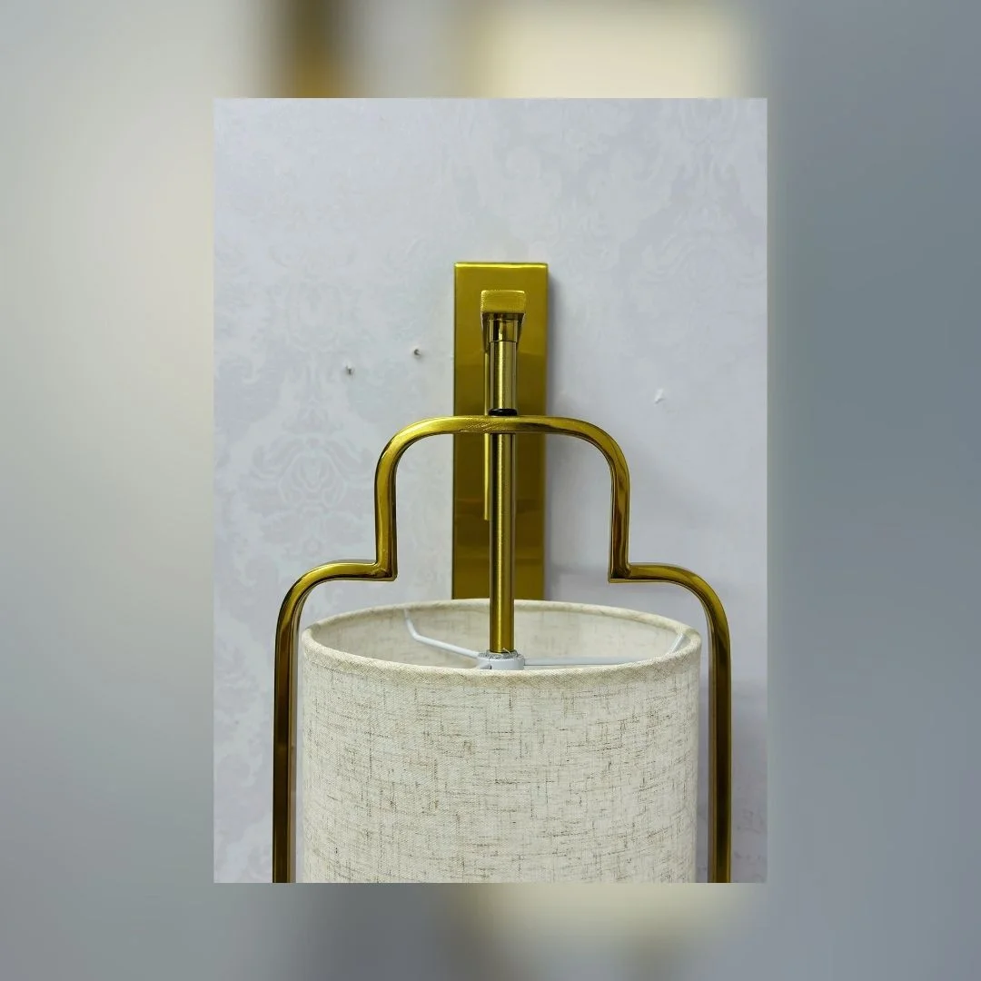 Đèn tường VK154 sở hữu hình dáng tổng thể cao, thon, tạo cảm giác kéo trần cao hơn và làm bức tường trông “cao” và sang hơn. Chao vải hình trụ dài màu kem được bao quanh bởi khung kim loại xi đồng mảnh, chạy dọc theo chiều cao đèn. Phần tay đèn nối từ bản đế đến thân trên được cách điệu bằng đường cong nhẹ, làm chiếc đèn không bị cứng mà vẫn giữ được sự vững chãi.