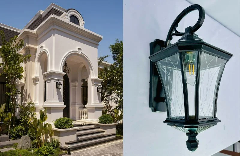 Tạo điểm nhấn cổ điển cho mặt tiền và sân vườn: Dáng lồng đèn cao, tay đỡ uốn cong và kính chia ô giúp mảng tường trở nên nổi bật hơn hẳn, đặc biệt khi lắp ở cửa chính, hiên nhà hoặc dọc lối đi.