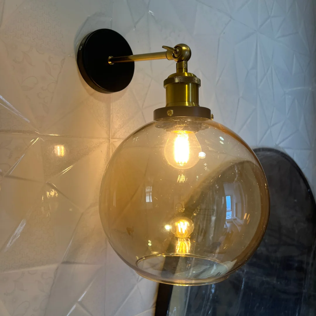 Về chất liệu, sản phẩm mang đặc trưng của dòng đèn tường decor với thân kim loại hoàn thiện phối đen đồng kết hợp chao thủy tinh trong. Cấu tạo này phù hợp vì phần khung kim loại giúp đèn chắc chắn, bền và giữ dáng tốt trong quá trình sử dụng. Chao thủy tinh trong giúp ánh sáng hiển thị rõ hơn, đồng thời làm nổi bật vẻ đẹp của bóng đèn bên trong theo phong cách rất cuốn hút.