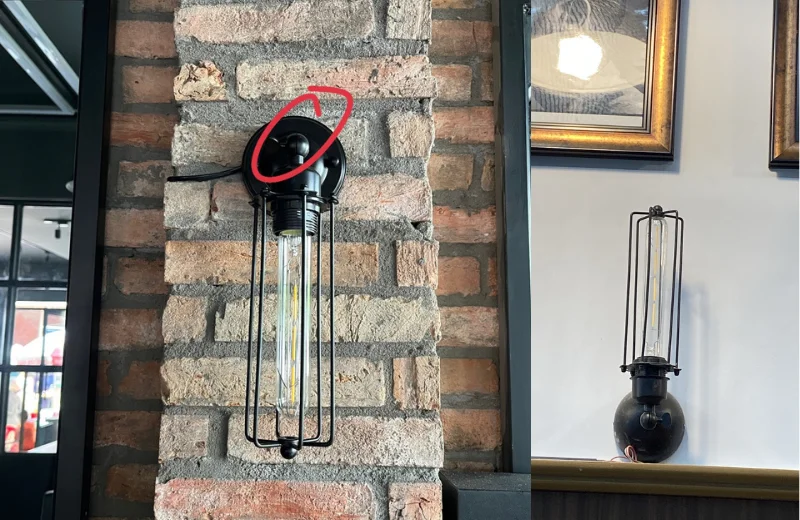 Về chất liệu, sản phẩm mang đặc trưng của dòng đèn tường decor với thân kim loại sơn đen kết hợp khung lồng sắt bảo vệ. Cấu tạo này phù hợp vì giúp đèn bền, chắc và giữ được form đẹp trong quá trình sử dụng lâu dài. Màu đen của phần khung cũng làm cho sản phẩm dễ phối với nhiều kiểu nội thất từ gỗ mộc, tường sáng đến không gian vintage hiện đại.
