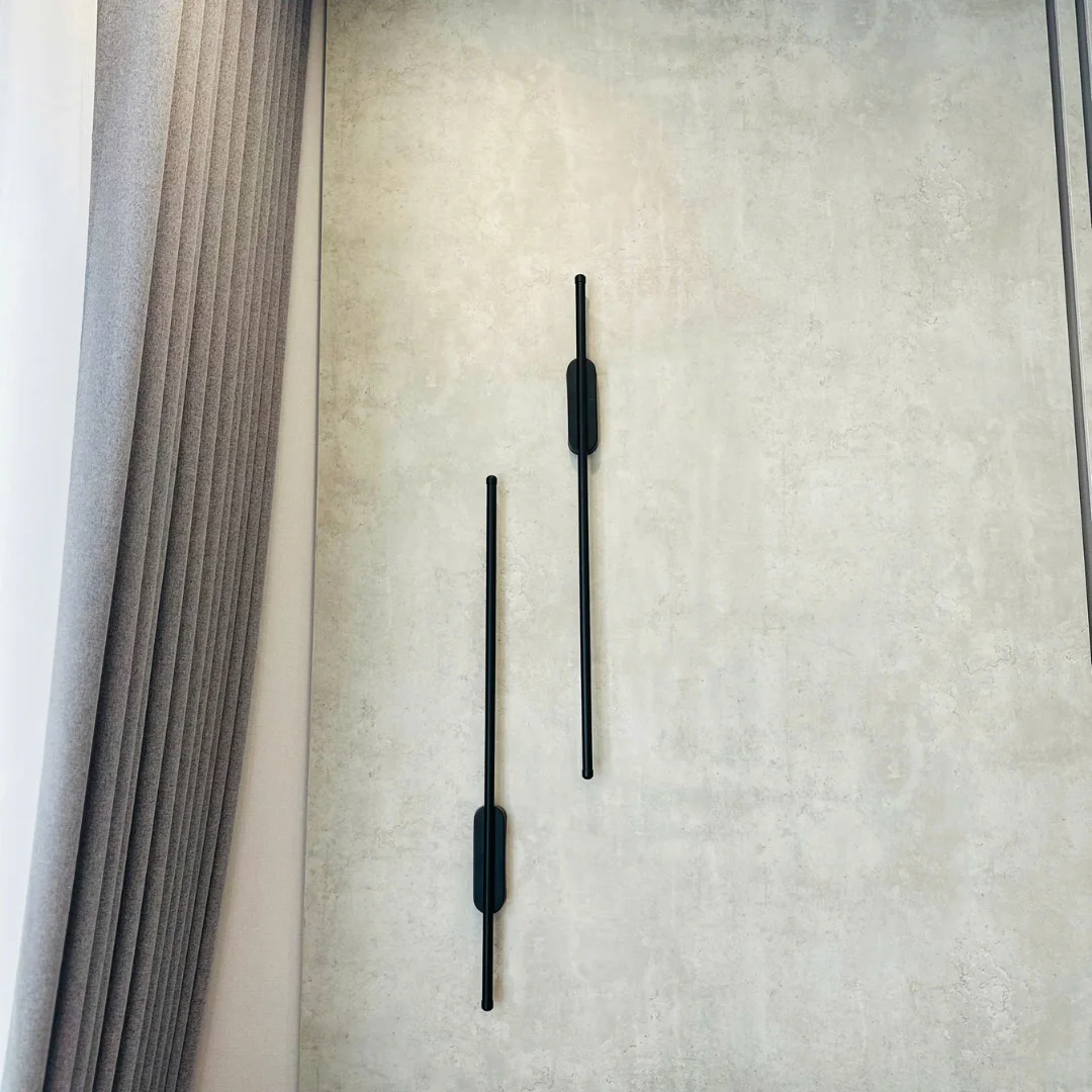Dáng thanh dọc tối giản giúp mảng tường gọn, hiện đại và có chiều sâu hơn.