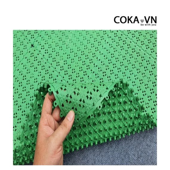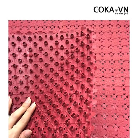 - Thảm Nhựa Ghép Hoa Mai còn phải đáp ứng được yêu cầu kỹ thuật cao về độ bám tốt và chống trơn trượt, tạo độ an toàn cao cho người dùng khi bước chân lên những khu vực có nước.