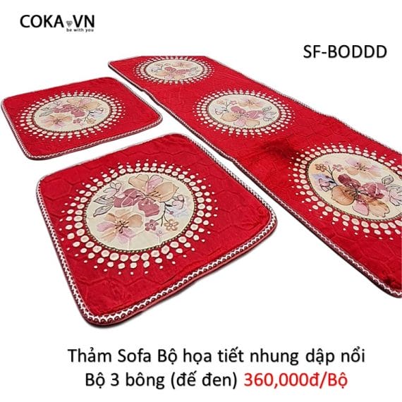 Thảm Sofa Trang trí Bộ Nhung Dập Nổi 1 Bộ gồm 2 tấm nhỏ (50cm x 50cm) và 1 tấm lớn (50cm x 160cm) SFBODTV, SFBODDD, SFBODDV